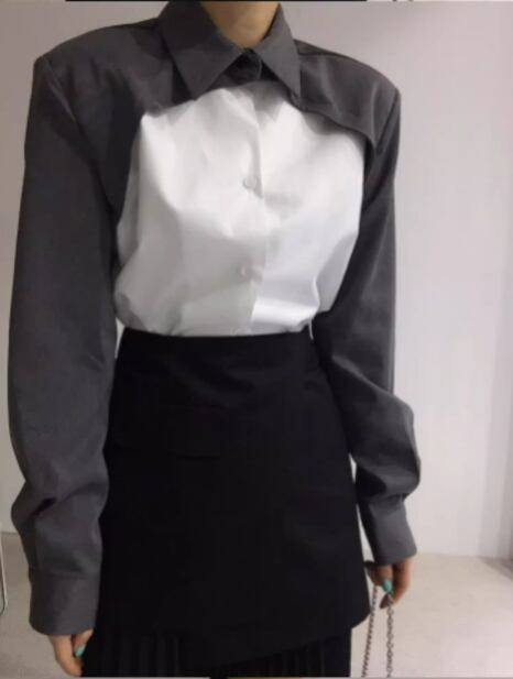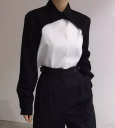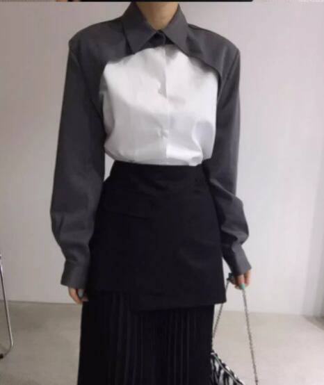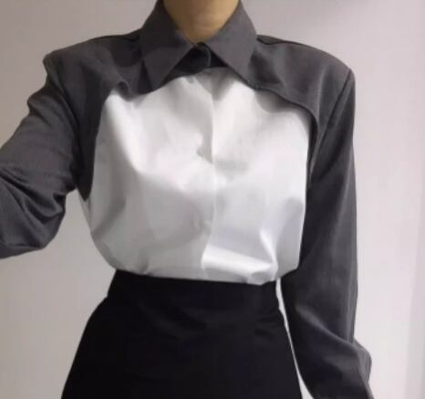 レディース トップス シャツ 長袖 ポロカラー 細身 ストレート バイカラー フェイクツーピース かわいい 大人可愛い きれいめ シンプル カジュアル 上品 おしゃれ かっこいい レトロ こなれ感 ラフ ガーリー 個性的 クール エレガント ラブリー キュート 無地 春 秋 20代 30代 OL 通勤 学生 学校 通学 デート お出かけ パーティー イベント 女子会 ショッピング カフェ 韓国 コーデ 体型カバー 普段使い 着回し モテ トレンド 流行 インスタ映え S M L XL ブラック グレー