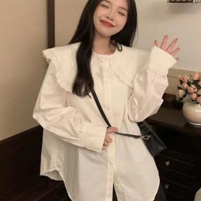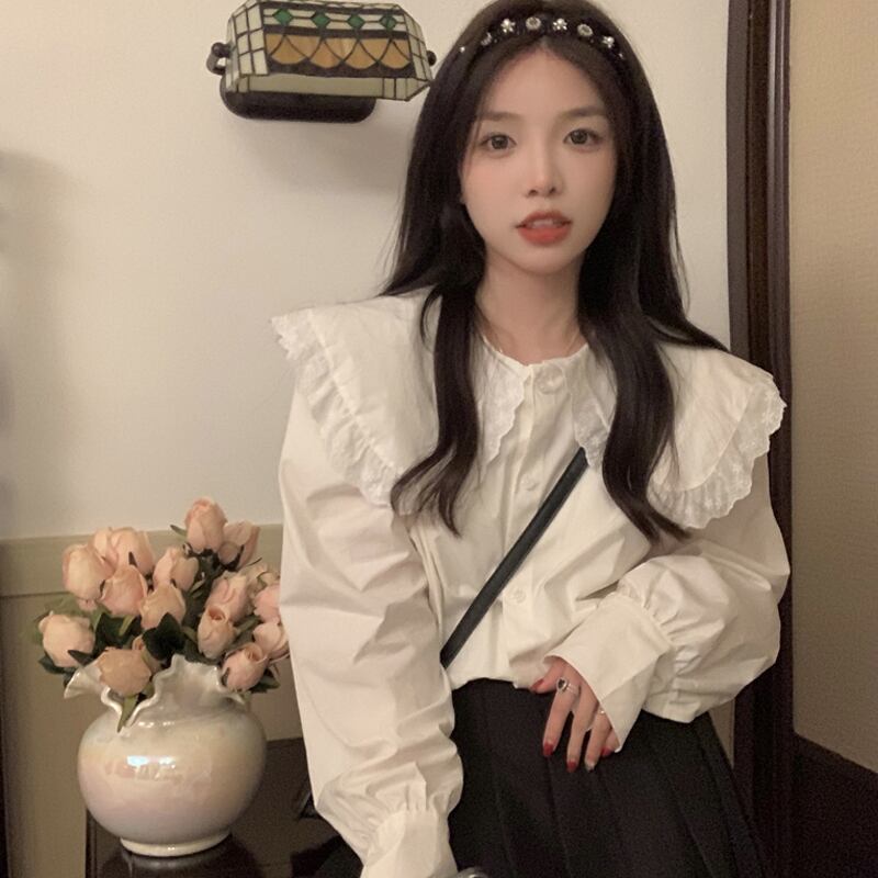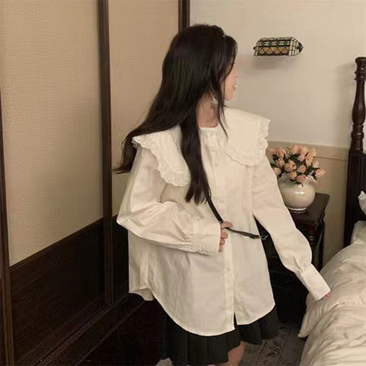 レディース トップス シャツ ブラウス 長袖 ボリューム袖 ストレート フリル ボタン 薄手 かわいい 大人可愛い きれいめ シンプル カジュアル 上品 おしゃれ レトロ こなれ感 ラフ ガーリー ルーズ ラブリー キュート 無地 春 秋 謝恩会 20代 10代 通勤 学生 学校 通学 デート お出かけ パーティー イベント 女子会 ショッピング カフェ お揃い 双子 韓国 コーデ 楽ちん 体型カバー 普段使い 着回し モテ 清楚 トレンド 流行 インスタ映え S M L ゆったり ゆる ホワイト
