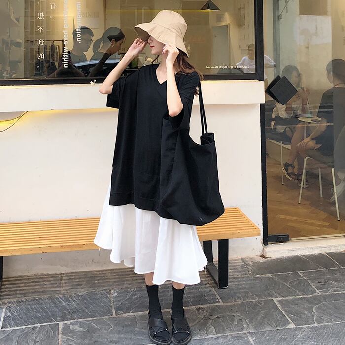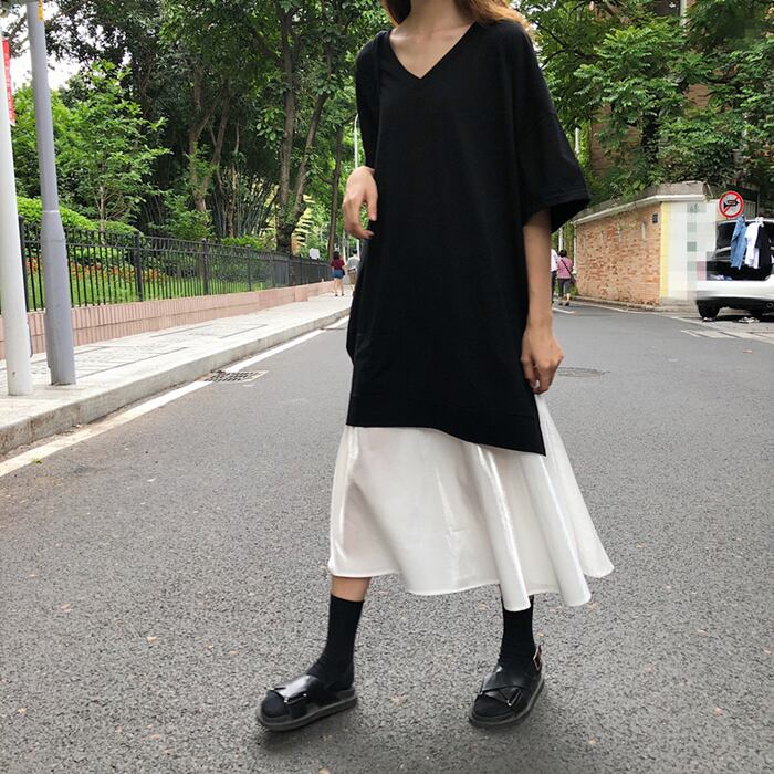 VネックとAラインのデザインで、体型カバーも叶えつつ女性らしさも演出してくれます。シンプルながらも切り替えデザインやドッキングが施され、上品な印象を与えてくれます。五分袖で着やすく、ミディアム丈が大人可愛いスタイリングにピッタリ。デートや女子会、休日のお出かけにもぴったりなアイテムです。