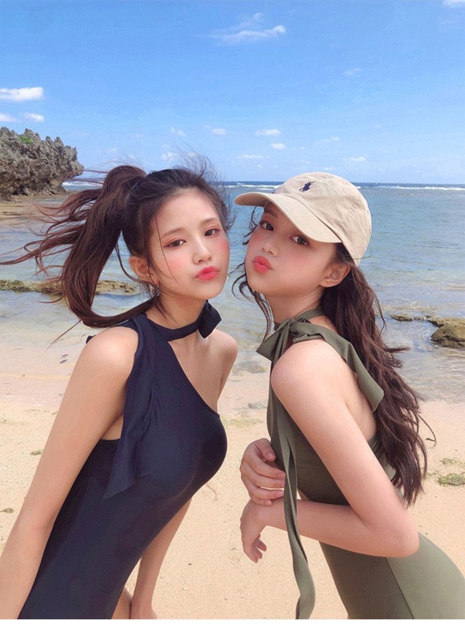 このワンピース水着は、ワンショルダーのデザインに可愛いリボンがアクセント。大人可愛い雰囲気を演出し、体型をカバーしながらも女性らしいシルエットを叶えます。胸元が盛れるカッティングで、セクシーさも演出。ビーチやプールでのリゾートシーンでも主役級の存在感を放ちます。