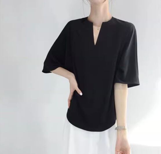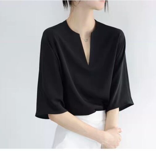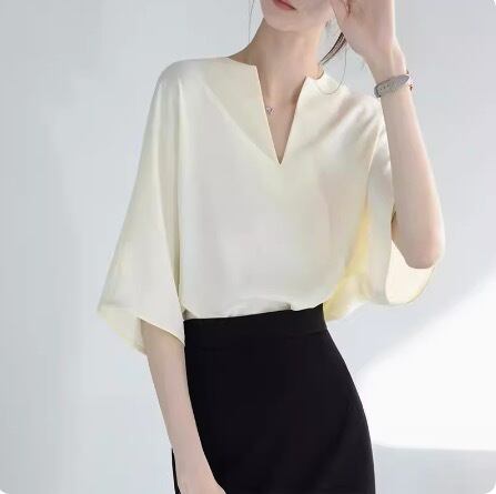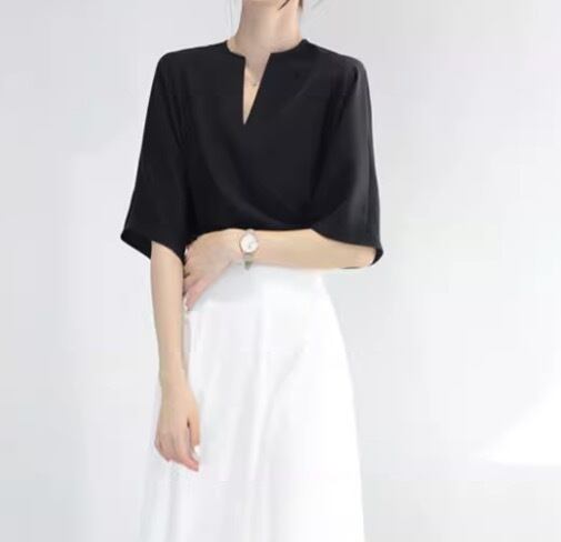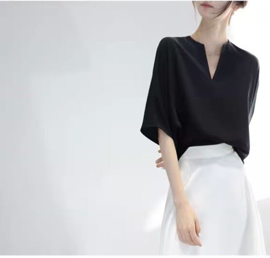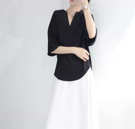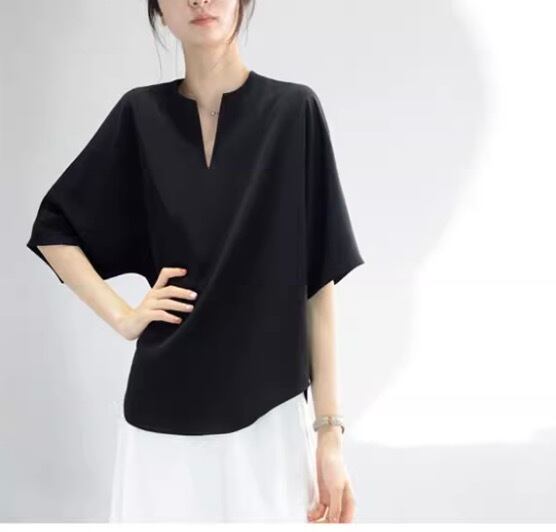 エレガントで女性らしい半袖カットソーが登場しました。シンプルなデザインながら、Vネックやワイドシルエットが上品さを引き立てます。デートや女子会、お出かけにぴったりな一枚です。