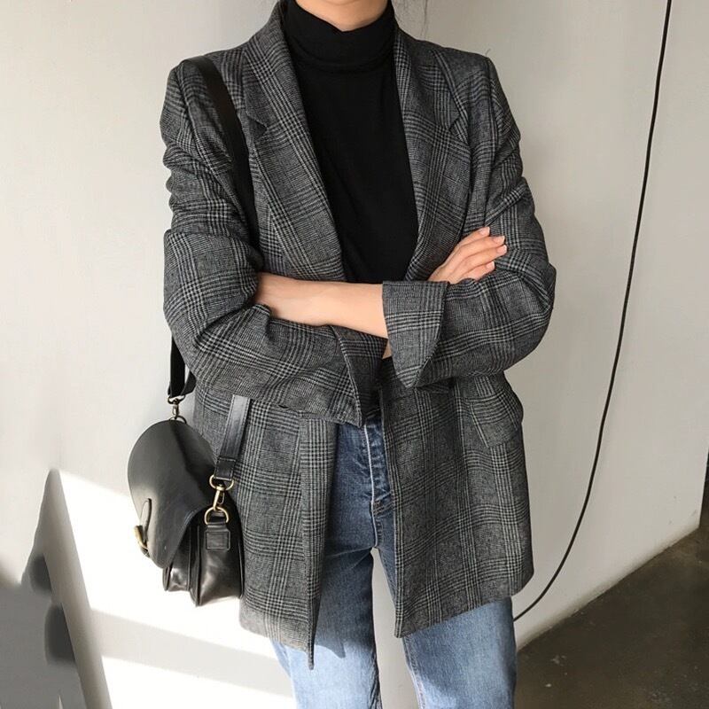 このウール混テーラードジャケットは、さりげないチェック柄がおしゃれなアクセント。Vネックとミディアム丈で、女性らしいきれいめカジュアルスタイルを演出します。重ね着にも適したシンプルで上品なデザインで、通勤やデートなど様々なシーンで活躍します。オルチャンコーデや体型カバーにもぴったりで、着回しの効くアイテムです。大人っぽくクールな雰囲気を醸し出し、こなれ感を演出します。シックなブラウンとブラックのカラーバリエーションで、春から冬まで幅広い季節にマッチします。カジュアルからきちんとした着こなしまで、幅広いスタイルに対応するレディースジャケットです。
