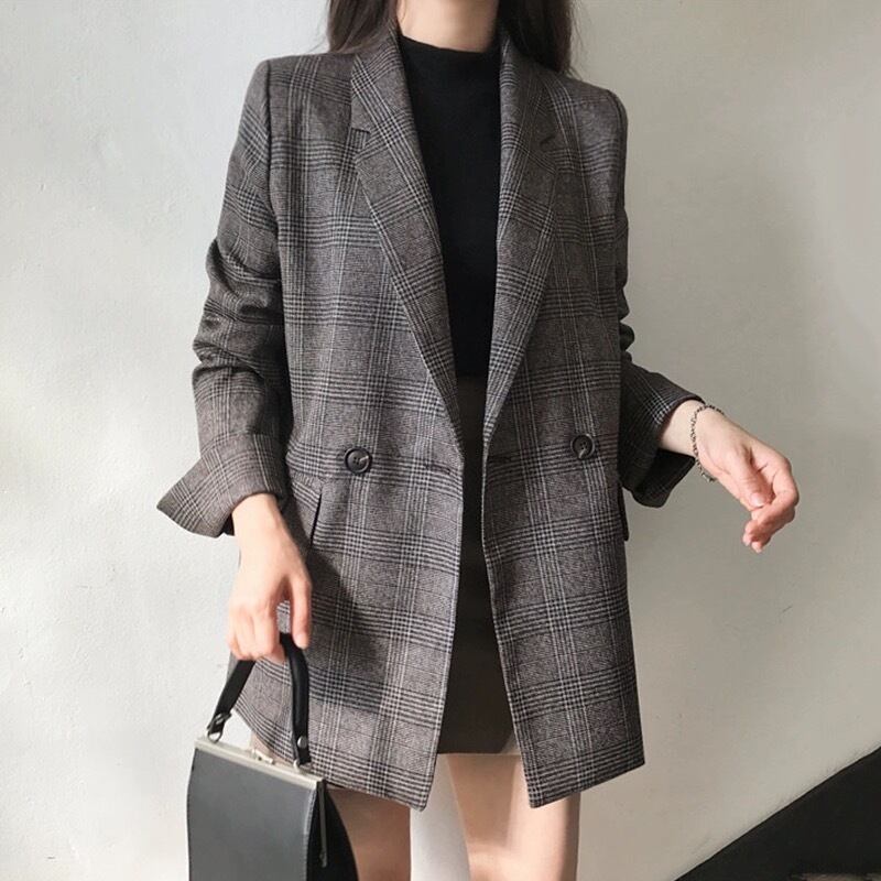 レディース ジャケット アウター 上着 テーラードジャケット ミディアム丈 長袖 Vネック 襟付き 前開き ウール混 きれいめ シンプル カジュアル 上品 おしゃれ かっこいい こなれ感 クール 大人っぽい シック チェック柄 春 秋 冬 ママ 女の子 OL 通勤 学生 学校 通学 デート お出かけ 女子会 休日 重ね着 韓国 オルチャン コーデ 体型カバー 普段使い 着回し レイヤード S M L XL ブラウン ブラック