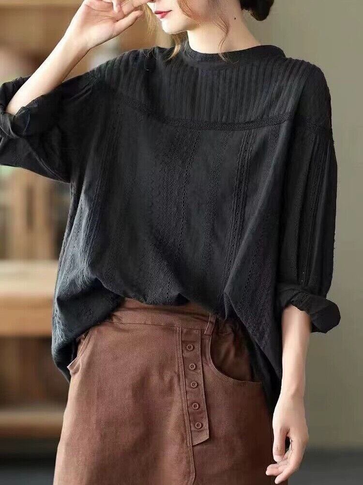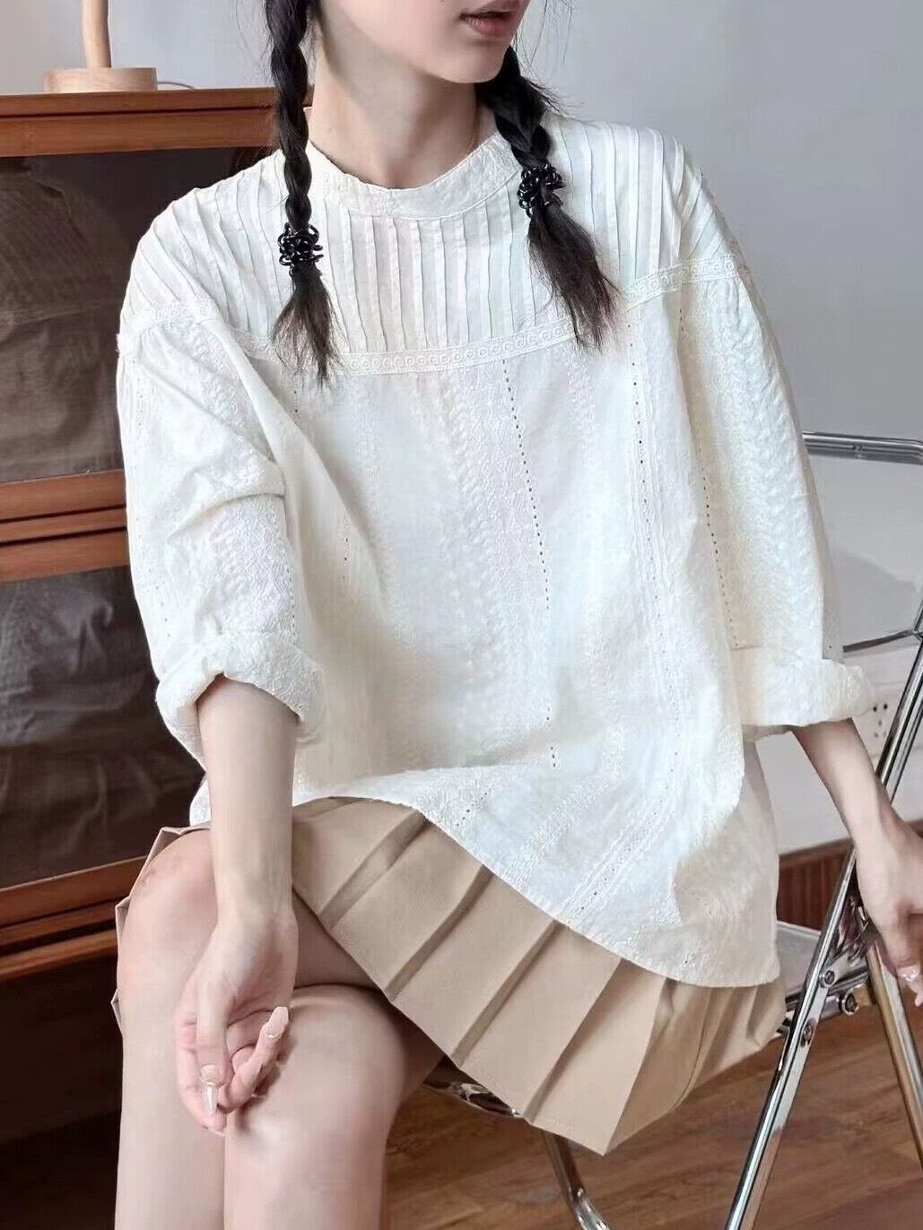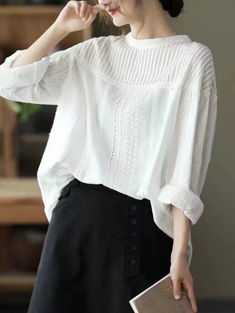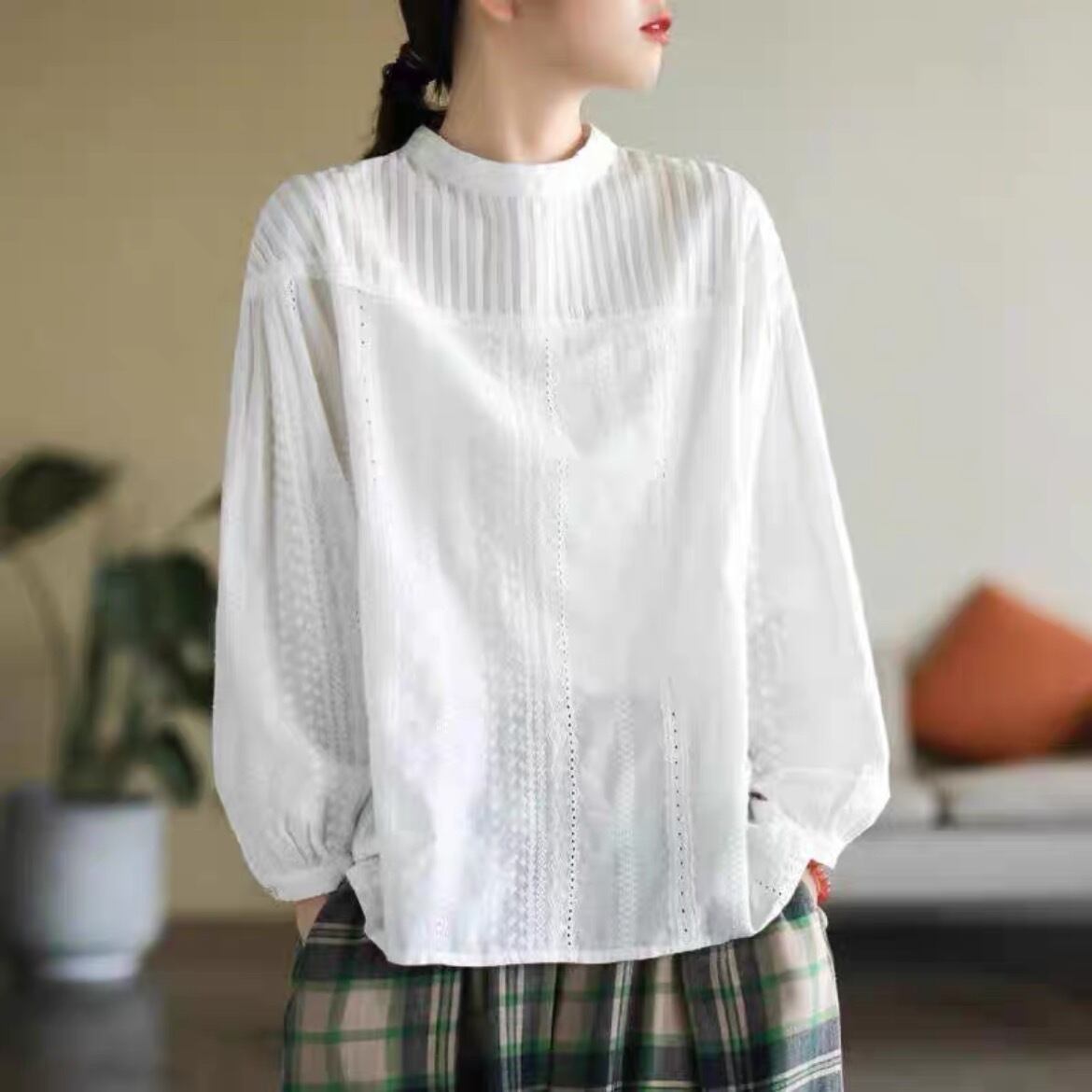 ブラウス レディース トップス シャツ カットソー 長袖 パフスリーブ ラウンドネック 透かし彫り フェミニン レース 刺繍 かわいい 大人可愛い きれいめ シンプル カジュアル 上品 おしゃれ レトロ こなれ感 ラフ ガーリー ルーズ エレガント ラブリー キュート 春 秋 ママ オフィス ビジネス OL 通勤 学生 デート お出かけ お泊まり イベント 旅行 公園 女子会 休日 カフェ コーデ 体型カバー 普段使い 着回し 清楚 ゆったり ゆる フリーサイズ ホワイト ブラック アプリコット