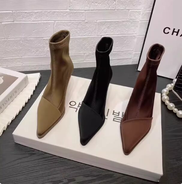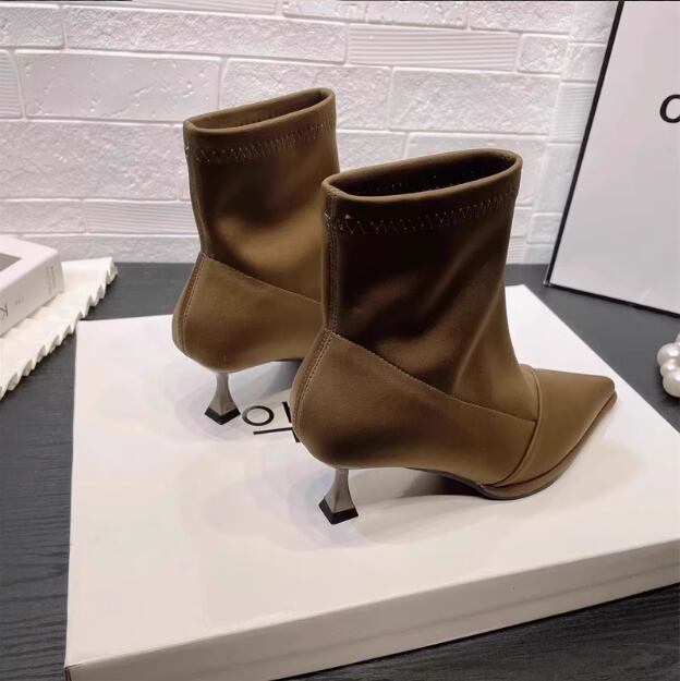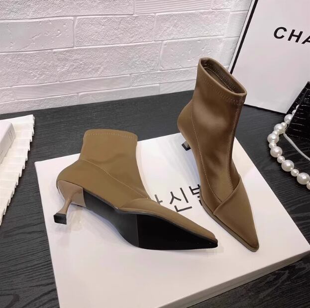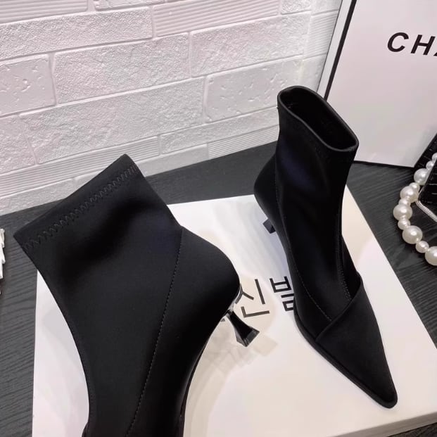 美しいデザインと快適な履き心地を兼ね備えたヒール付きショートブーツ。