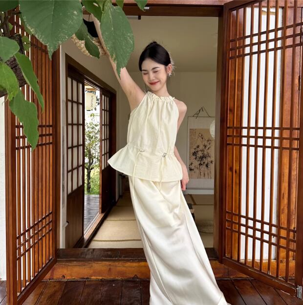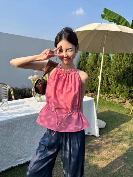 ホルダーネックのデザインが、女性らしさを引き立てます。