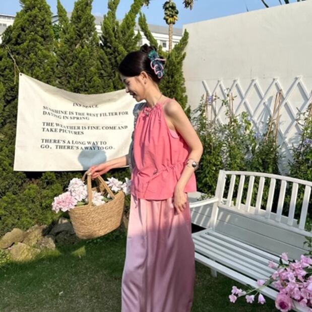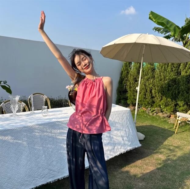 トップス ショート丈 ノースリーブ ホルダーネック かわいい 大人可愛い きれいめ シンプル カジュアル 上品 おしゃれ かっこいい 大人女子 こなれ感 個性的 主役級 存在感 キュート ナ クール ガーリー ナチュラル ベーシック 春 秋 冬 レディース 女性用 OL 通勤 オフィス 学生 通学 ママ デート お出かけ お泊まり イベント 女子会 休日 カフェ ショッピング 旅行 アウトドア リゾート コンパ レストラン 重ね着 普段使い アプリコット ピンク S M L