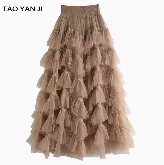 チュール スカート カジュアル フレア Aラインサーキュラースカート 無地 ロング パーティースタイル ホームパーティーアイテム レース オフィススタイル エレガントスタイル カジュアルスタイル ティアード 謝恩会 シースルー ラウンジウェア かわいい 大人可愛い きれいめ シンプル カジュアル おしゃれ ラフ メンズライク 主役級 存在感 春 夏 秋 冬 アプリコット ブラウン ブラック フリーサイズ