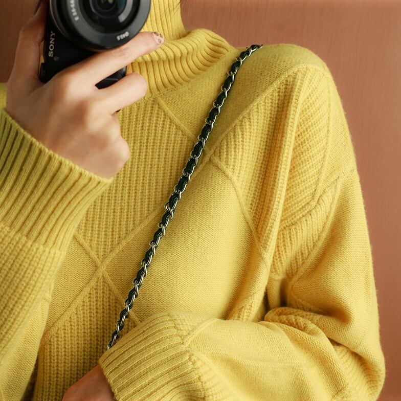 タートルネックと萌袖がついたカワイイデザインで、大人可愛いスタイリングが叶います。