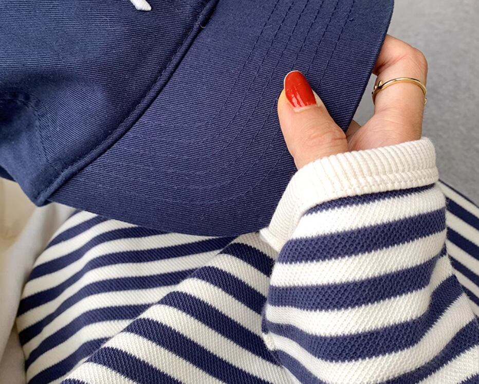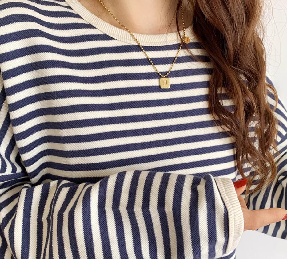 カジュアルなボーダーにドロップショルダーで女性らしさをプラス