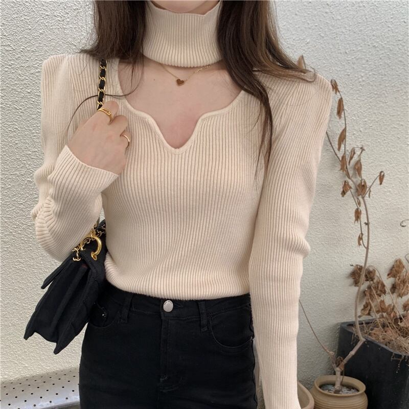 トップス セーター ニットソー ミディアム丈 長袖 胸開き ネックウォーマー タイト かわいい 大人可愛い きれいめ シンプル 上品 おしゃれ かっこいい レトロ こなれ感 個性的 主役級 存在感 抜け感 秋 冬 キュート ナチュラル ベーシック セクシー クール 無地 レディース 女性用 ママ OL 通勤 オフィス ビジネス 学生 通学 デート お出かけ お泊まり イベント 女子会 休日 カフェ ショッピング 旅行 レストラン コンパ レイヤード 重ね着 普段使い 着回し S M L モテ ファッション