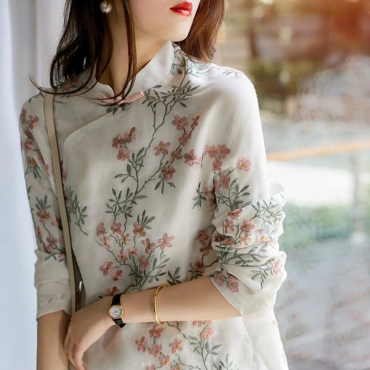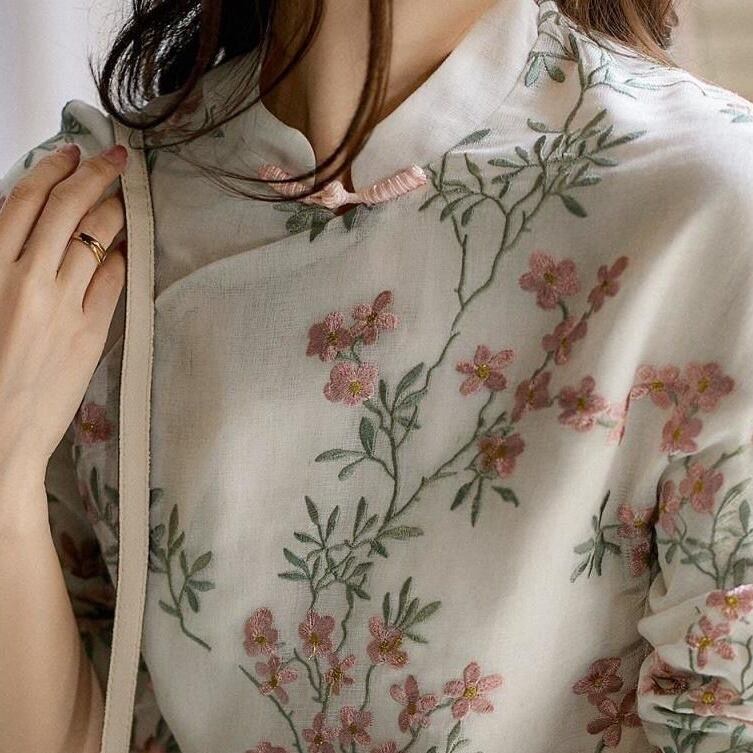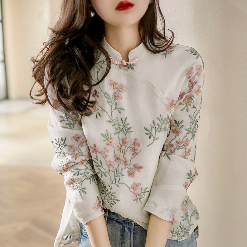 トップス シャツ ブラウス プルオーバー ミディアム丈 長袖 刺繡 シースルー 襟なし かわいい 大人可愛い きれいめ シンプル 上品 おしゃれ かっこいい レトロ こなれ感 個性的 主役級 存在感 抜け感 アジアン エスニック オールシーズン キュート ナチュラル ベーシック 清楚 クール 花柄 レディース 女性用 ママ OL 通勤 学生 通学 デート お出かけ お泊まり イベント 女子会 休日 カフェ ショッピング レストラン コンパ レイヤード 重ね着 普段使い 着回し M L XL 2XL