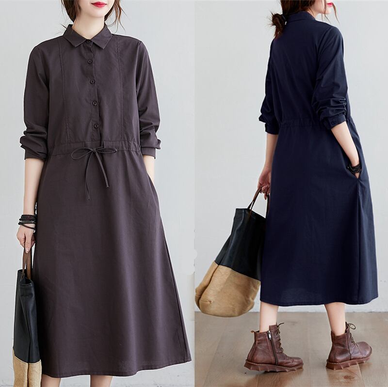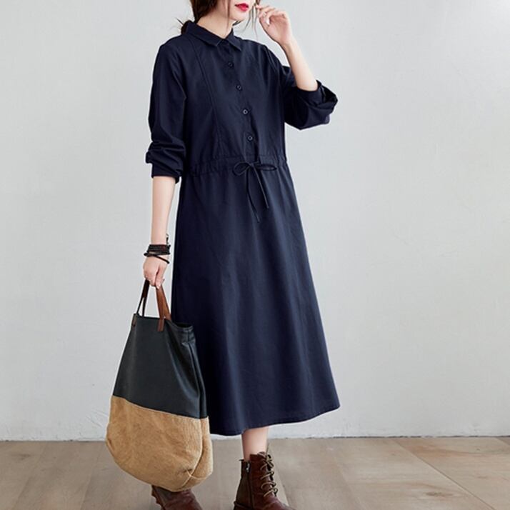ワンピース ミディアム丈ワンピース シャツワンピース 長袖 襟付き ハーフボタン ウエストマーク かわいい 大人可愛い きれいめ シンプル カジュアル 上品 おしゃれ かっこいい 大人女子 こなれ感 個性的 きちんと レトロ 主役級 存在感 キュート クール ナチュラル ベーシック 無地 秋 冬 レディース 女性用 ママ マタニティ OL 通勤 学生 通学 デート お出かけ お泊まり イベント 女子会 休日 カフェ ショッピング 旅行 リゾート コンパ レストラン 普段使い 着回し M L XL 2XL