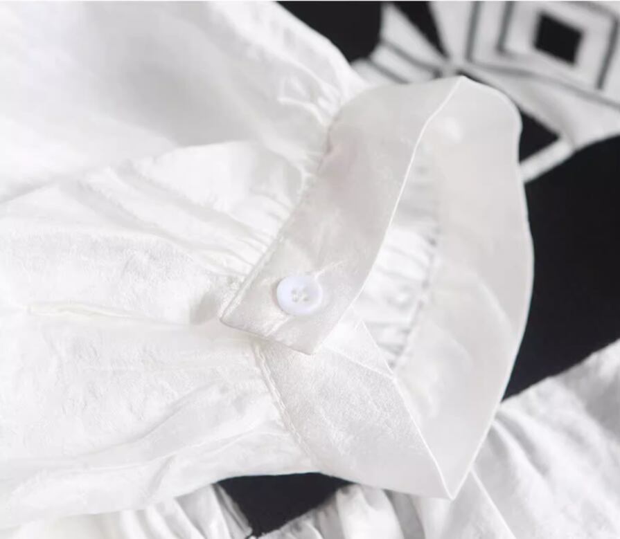 トップス ブラウス 白シャツ 袖あり 5分袖 五分袖 ボリューム袖 Vネック 切り替えデザイン ドッキング 透け感 かわいい カジュアル おしゃれ お洒落 こなれ感 無地 柄 春 夏 10代 20代 30代 40代 レディース 女性用 ママ お出かけ 休日 着回し 普段使い 楽ちん M L XL 2XL 白 ホワイト