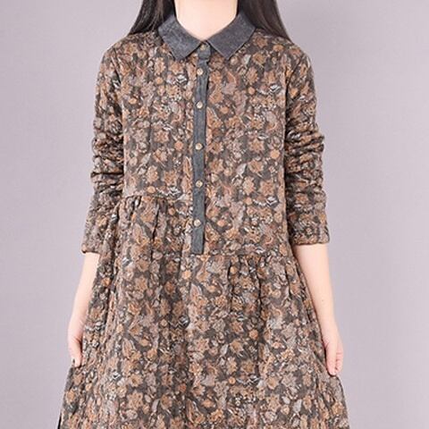 ワンピース ミディアム丈ワンピース シャツワンピース 長袖 襟付き ハーフボタン かわいい 大人可愛い きれいめ シンプル カジュアル 上品 おしゃれ かっこいい 大人女子 こなれ感 個性的 きちんと レトロ 主役級 存在感 キュート クール ナチュラル ベーシック リーフ柄 秋 冬 レディース 女性用 ママ マタニティ OL 通勤 学生 通学 デート お出かけ お泊まり イベント 女子会 休日 カフェ ショッピング 旅行 リゾート コンパ レストラン 普段使い 着回し M L XL 2XL 楽ちん