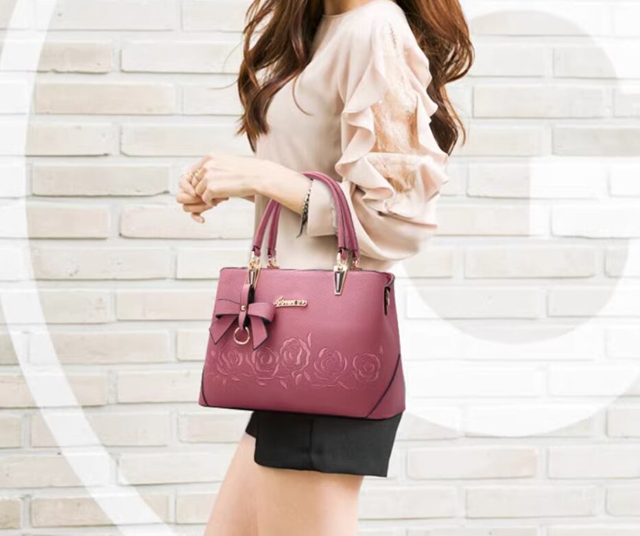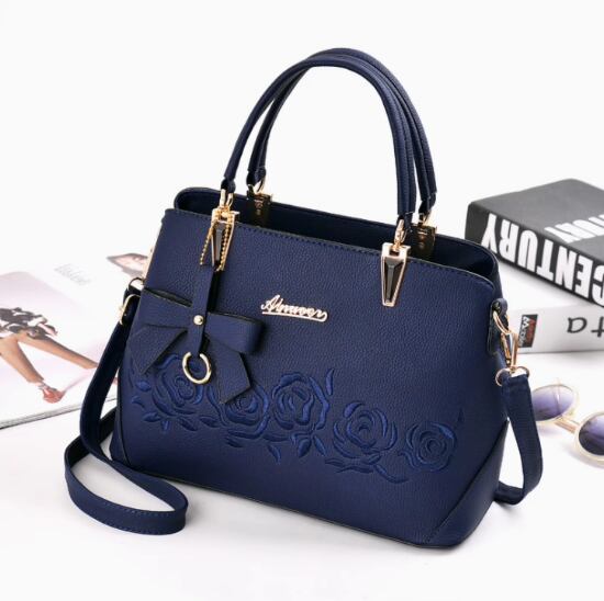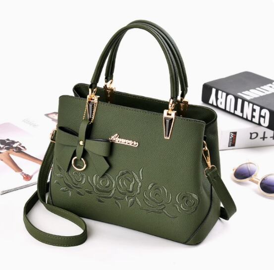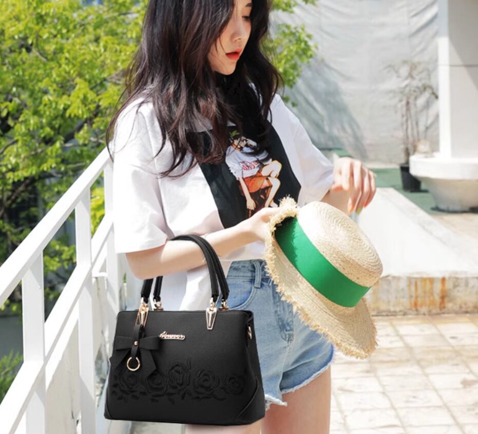 バラの刺繍とリボンチャームが目をひくショルダーバッグ