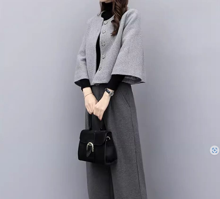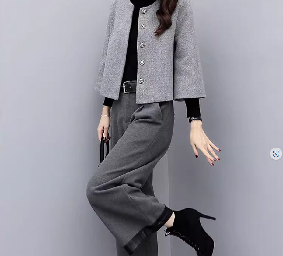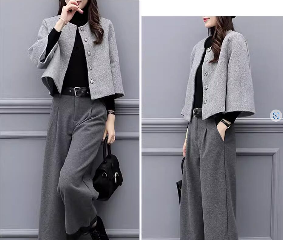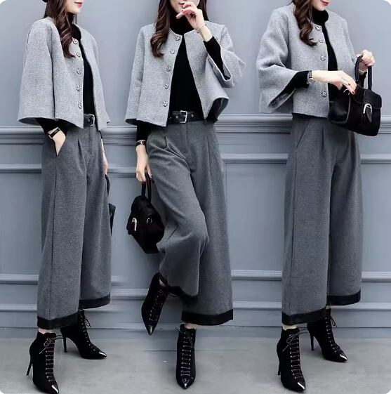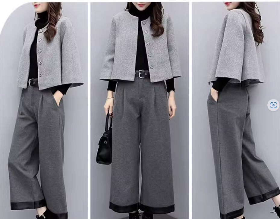 ツーピースセット ボトムス パンツ アウター ジャケット 上着 ワイドパンツ ショート丈 袖あり 7分袖 七分袖 ボリューム袖 ノーカラー 切り替えデザイン ハイウエスト 上下セット 2点セット ツーピース お得 きれいめ シンプル カジュアル 大人 フォーマル 無地 春 秋 冬 卒業式 卒園式 30代 40代 レディース 女性用 ママ OL 通勤 着回し 普段使い 重ね着 S M L XL 2XL 灰色 グレー