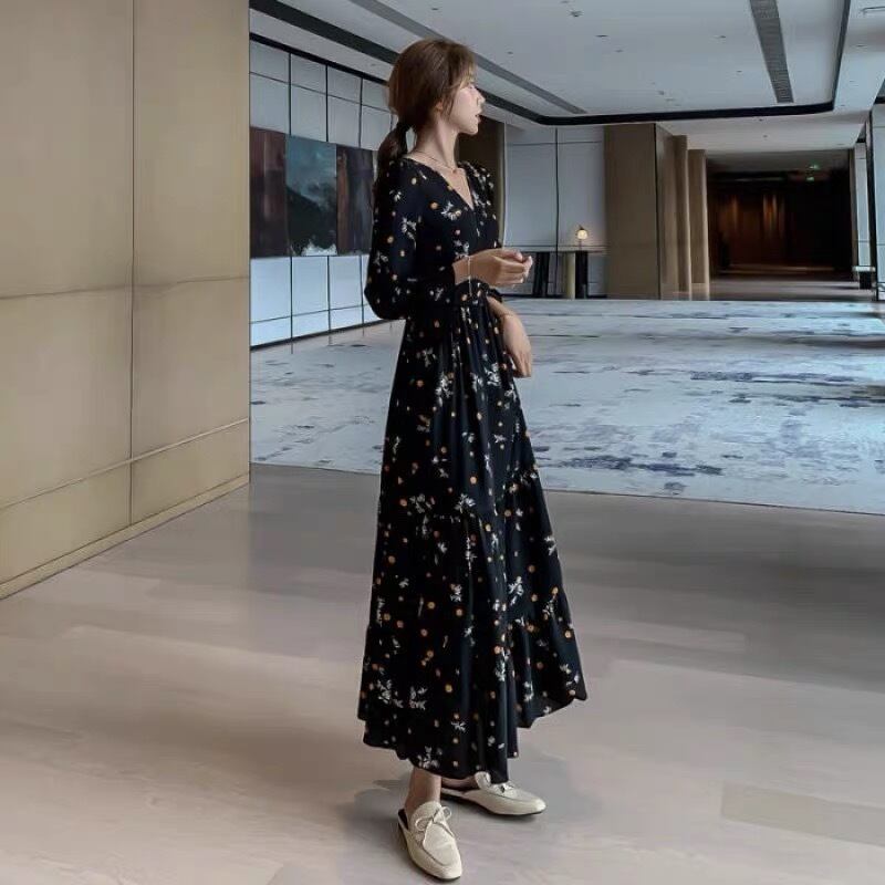 大人可愛い雰囲気漂う、Vネックのロングワンピースが登場しました。