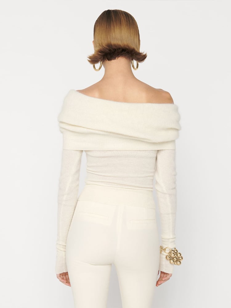 魅力的なオフショルダーニットセーター!大人可愛いスタイルを演出できるトップス。繊細なニット編みで、上品な印象を与える一着。スリムなシルエットとオフショルダーデザインが女性らしさを引き立てます。シンプルなデザインなので、様々なコーディネートに合わせやすく、カジュアルからきれいめまで幅広いスタイリングが楽しめます。