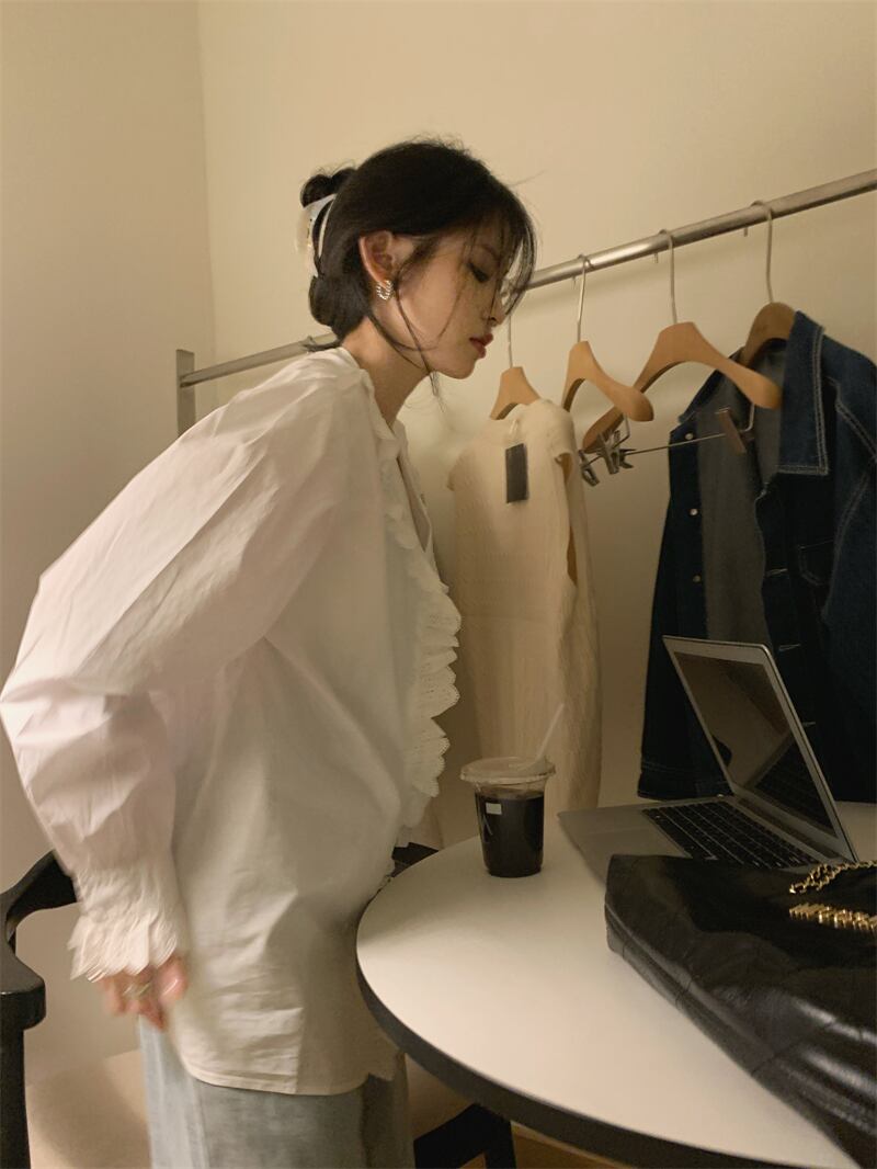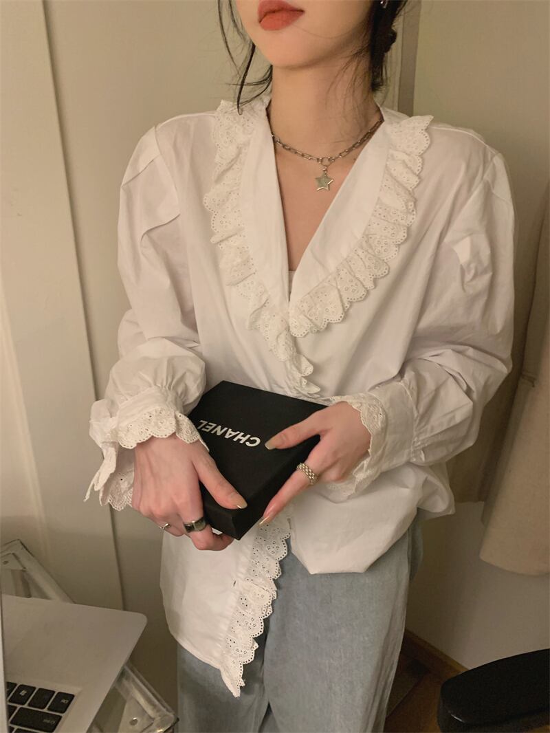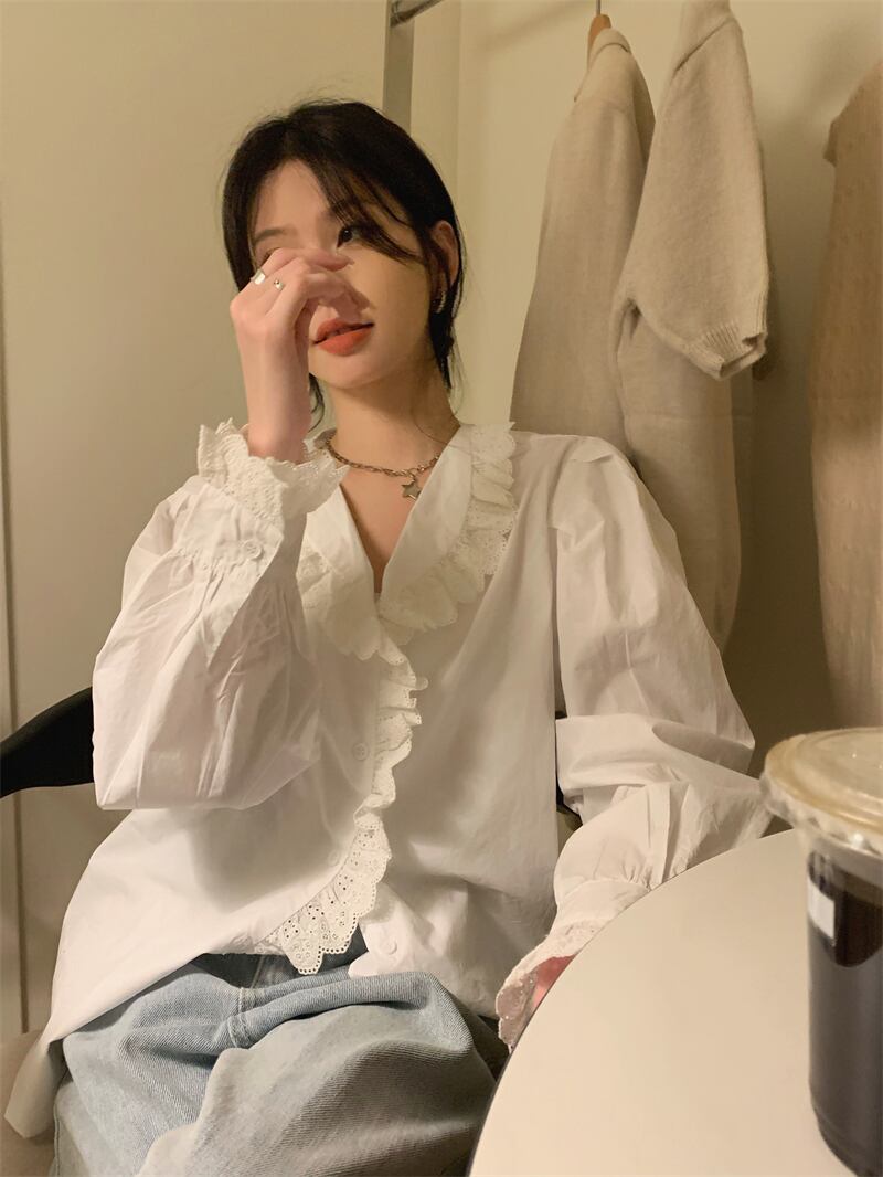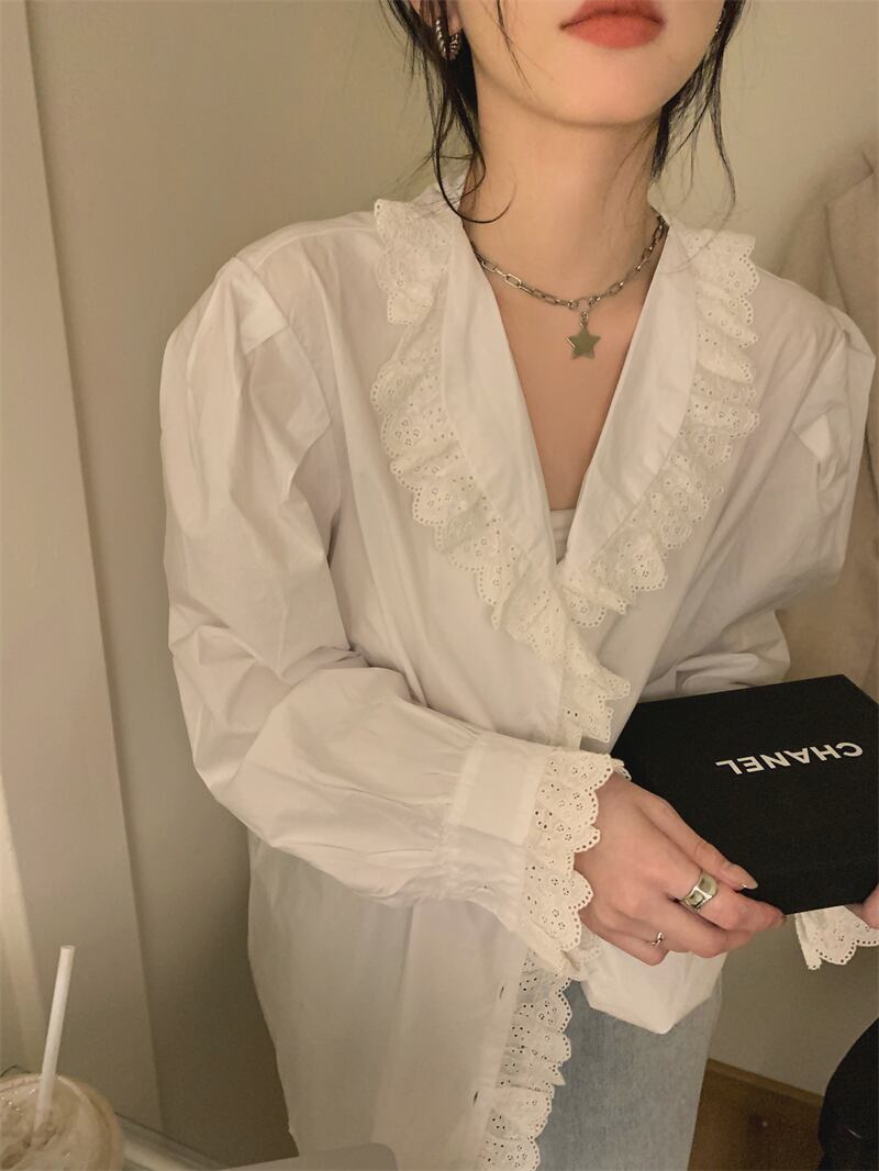 レディース トップス シャツ ブラウス パフスリーブ フリル袖 Vネック ストレート レース フリル ボタン 薄手 かわいい 大人可愛い きれいめ シンプル カジュアル おしゃれ レトロ こなれ感 ガーリー ルーズ エレガント とろみ感 抜け感 ラブリー キュート 無地 春 秋 通勤 学生 学校 通学 デート お出かけ 女子会 ショッピング カフェ 韓国 コーデ 楽ちん 体型カバー 普段使い 着回し モテ トレンド 流行 インスタ映え S M L ゆったり ゆる ホワイト