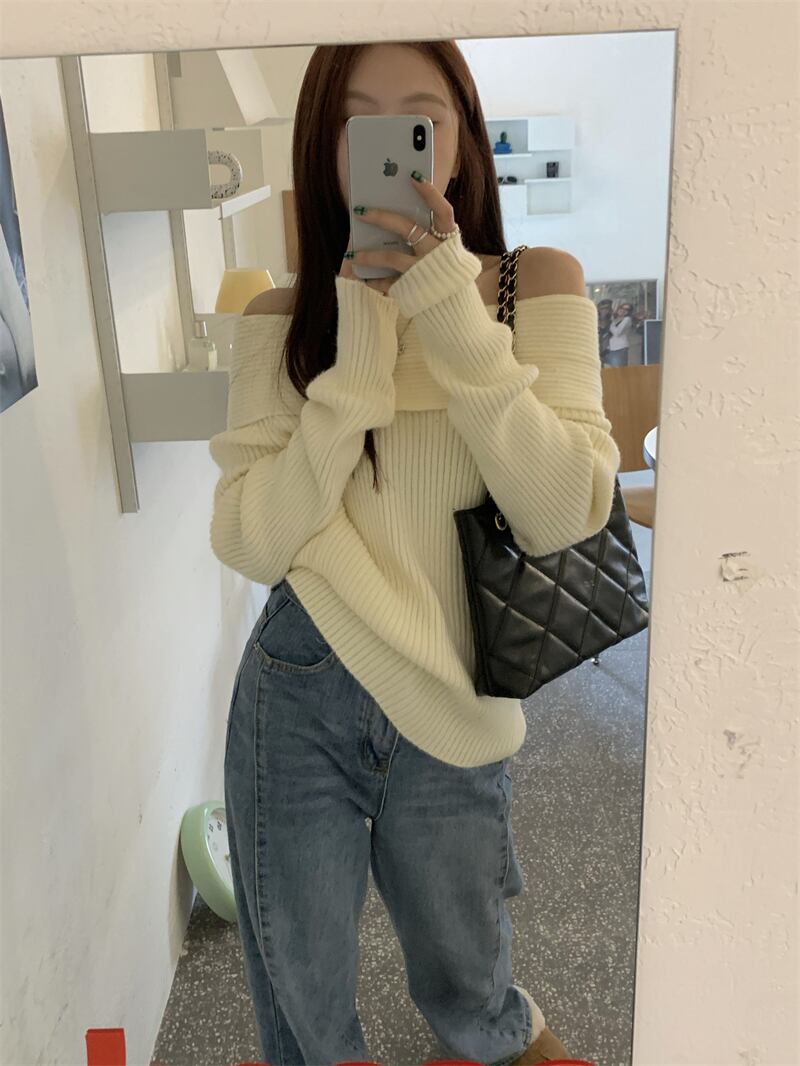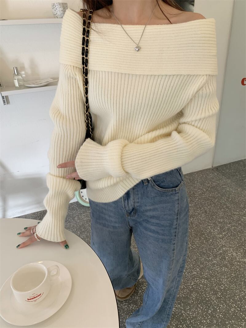 レディース トップス ニット デート ニットソー 白トップス ミディアム丈 袖あり 長袖 オフショルダー オフショル 襟なし リブ リブニット かわいい 大人可愛い きれいめ シンプル カジュアル 上品 おしゃれ お洒落 レトロ 大人女子 こなれ感 ラフ ラブリー キュート ガーリー 個性的 クール モード系 エレガント モダン 主役級 存在感 抜け感 レディース デート お出かけ 女子会 休日 着回し 普段使い ファッション コーデ スタイル モテ プレゼント 定番 トレンド インスタ映え 色展開