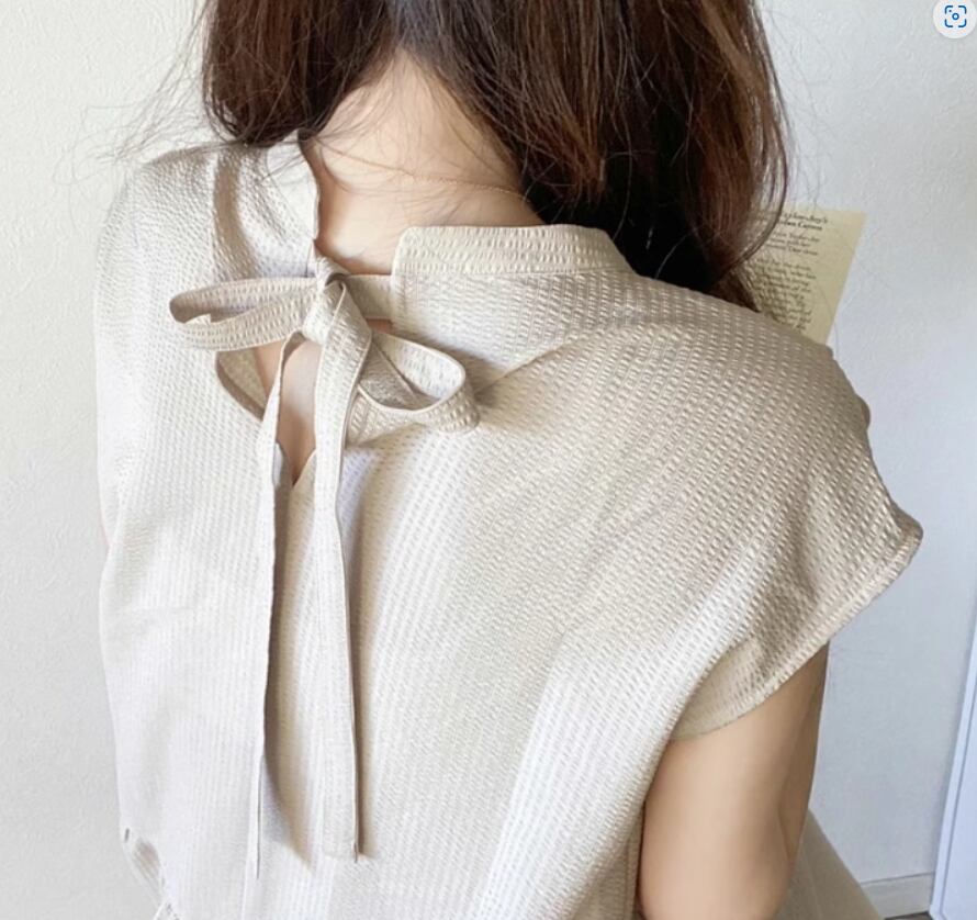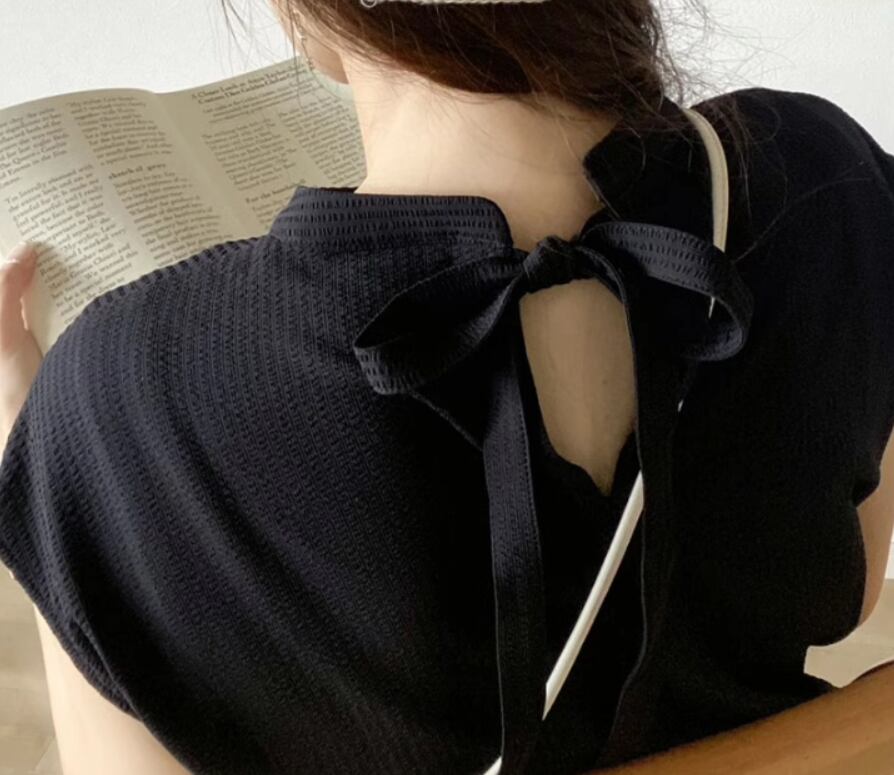 バックリボンとフレンチスリーブで女性らしさを演出