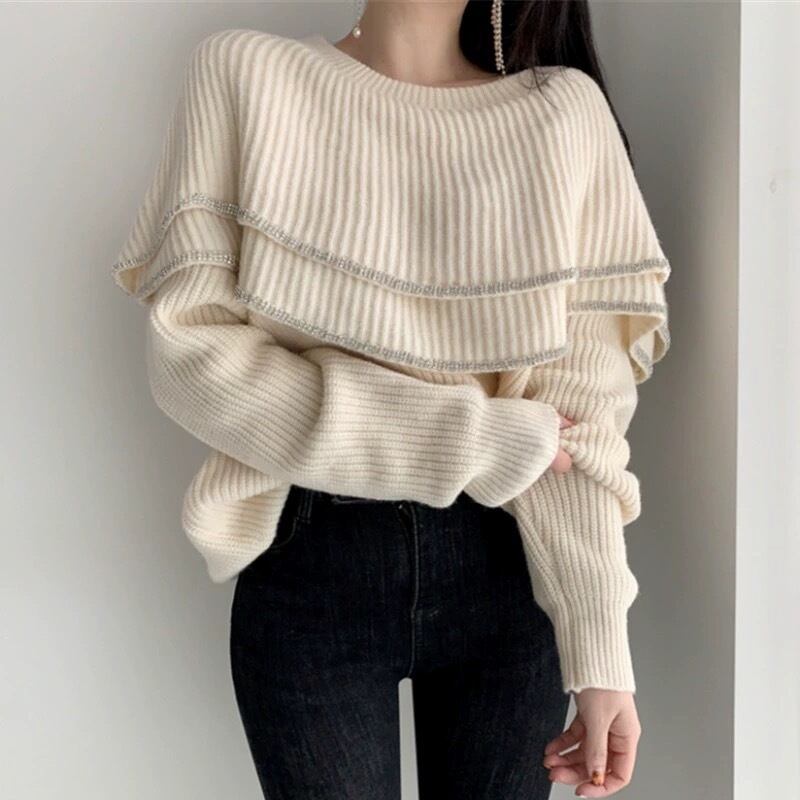 レディース ニット デート モテアイテム ニットソー ざっくりニット 長袖 フリル 大人可愛い きれいめ 上品 おしゃれ かっこいい 大人可愛い ラブリー キュート ガーリー クール モード系 セクシー エレガント 存在感 フォーマル レディース OL 通勤 学生 デート お出かけ 公園デビュー 女子会 休日 ホテル ショッピング 普段使い 双子 韓国系 オルチャン ファッション コーデ スタイル 暖かい 防寒 トレンド インスタ映え フリーサイズ ホワイト ブラック