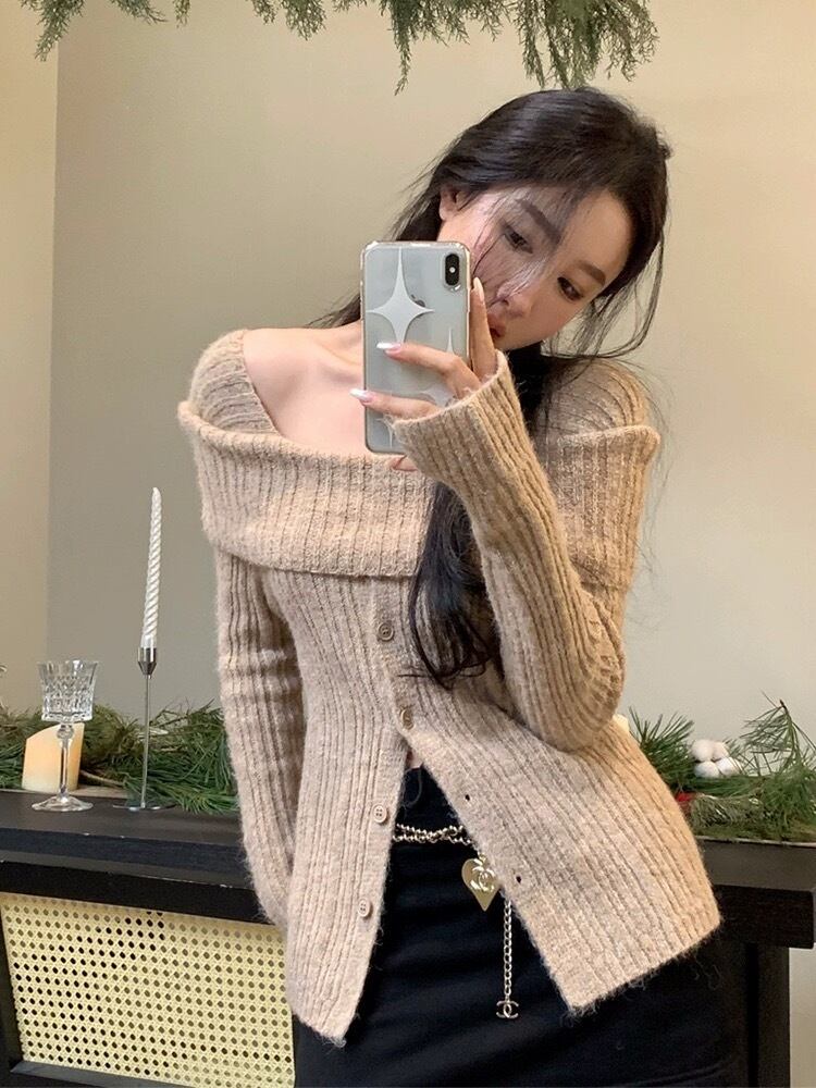オフショルダーニット カットソー 3色 秋冬 トップス 入荷 ストリート 長袖 無地 パーティースタイル ホームパーティーアイテム オフィススタイル エレガントスタイル カジュアルスタイル ラウンジウェア かわいい 大人可愛い きれいめ おしゃれ デート お出かけ パーティー イベント 女子会 ショッピング カフェ