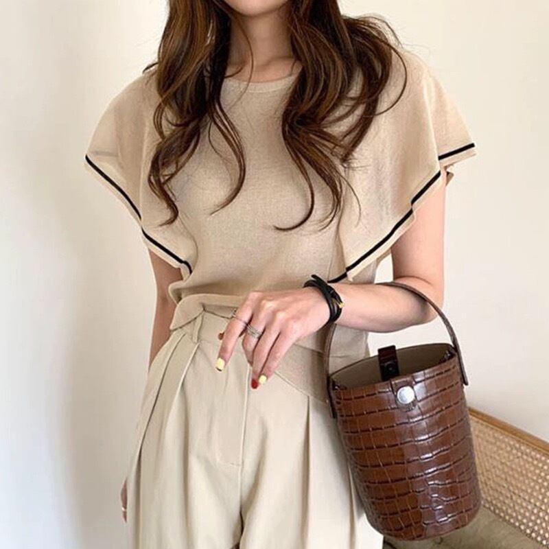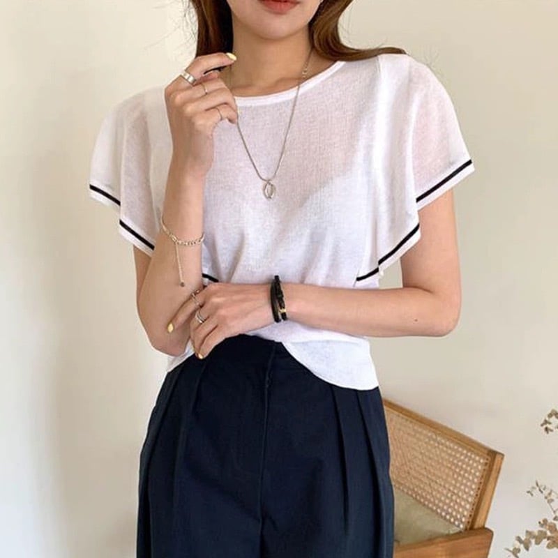 クールなデザインが魅力の、夏にぴったりの半袖ニットセーター。