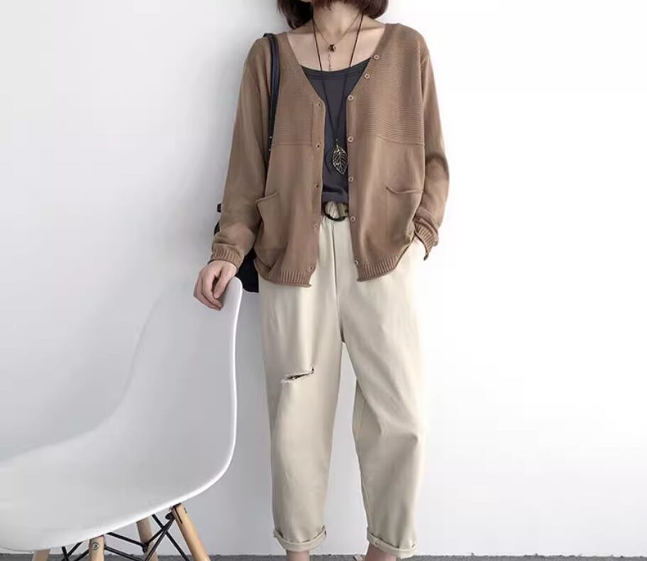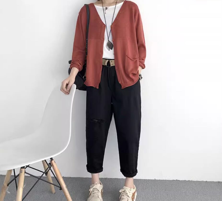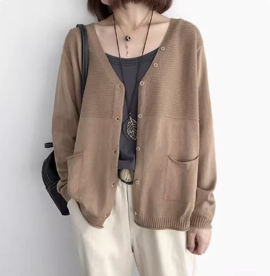 トップス カーディガン 長袖 Vネック ストレート 切り替えデザイン ポケット 伸縮性 かわいい シンプル カジュアル おしゃれ お洒落 ラフ ルーズ 無地 春 秋 20代 30代 40代 レディース 女性用 ママ お出かけ 休日 旅行 着回し 普段使い 重ね着 楽ちん M L XL 2XL 黒 ブラック 赤 レッド 青 ブルー 茶色 ブラウン イエロー キャメル