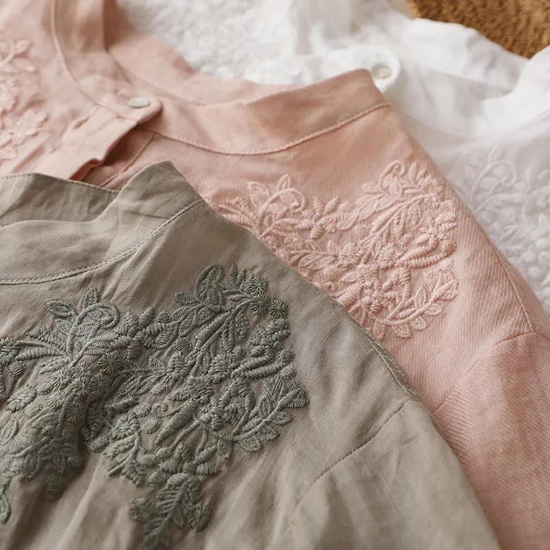トップス シャツ ブラウス ミディアム丈 7分袖 ラウンドネック 刺繡 襟なし ウエストマーク かわいい 大人可愛い きれいめ シンプル 上品 おしゃれ かっこいい レトロ こなれ感 個性的 主役級 存在感 抜け感 アジアン エスニック 春 キュート ナチュラル ベーシック 清楚 クール 花柄 レディース 女性用 ママ OL 通勤 学生 通学 デート お出かけ お泊まり イベント 女子会 休日 カフェ ショッピング レストラン コンパ レイヤード 重ね着 普段使い 着回し M L XL 2XL