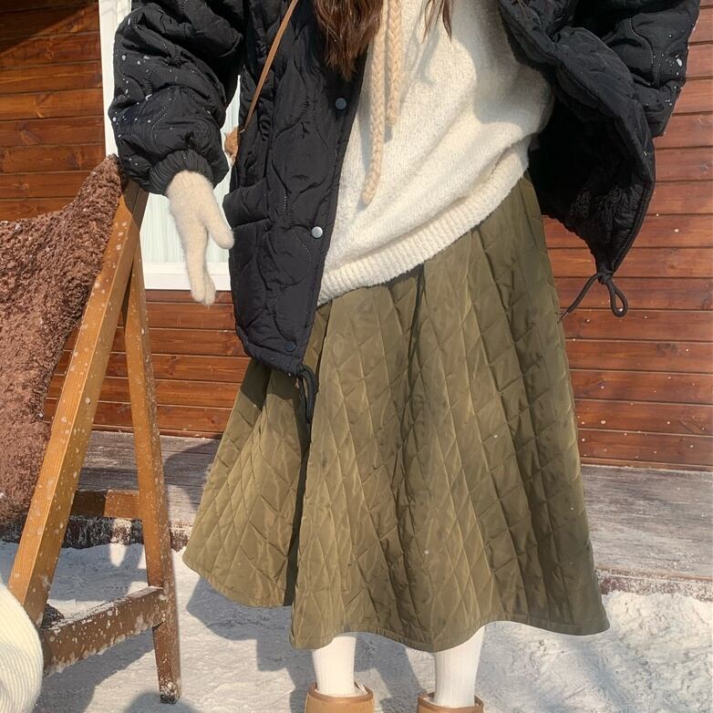 ボトムス スカート ミディアム丈スカート ポケット キルティング Aライン かわいい 大人可愛い きれいめ シンプル カジュアル 上品 おしゃれ かっこいい 大人女子 こなれ感 個性的 ラフ レトロ 主役級 存在感 キュート クール ガーリー ナチュラル ベーシック 無地 秋 冬 レディース 女性用 ママ マタニティ OL 通勤オフィス 学生 通学 デート お出かけ お泊まり イベント 女子会 休日 カフェ ショッピング 旅行 リゾート コンパ レストラン 普段使い 着回し 脚長 ワンサイズ モテ