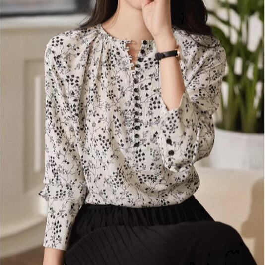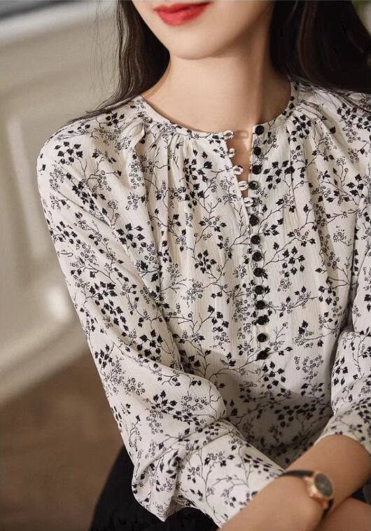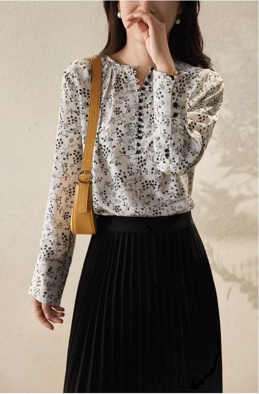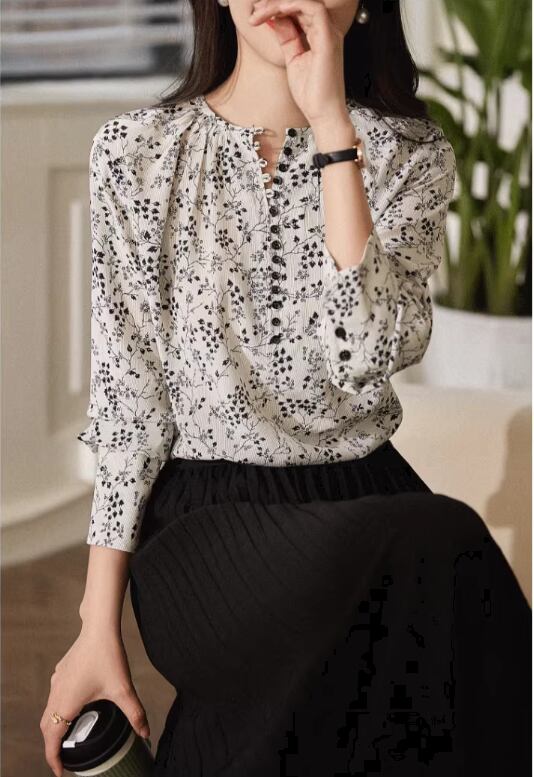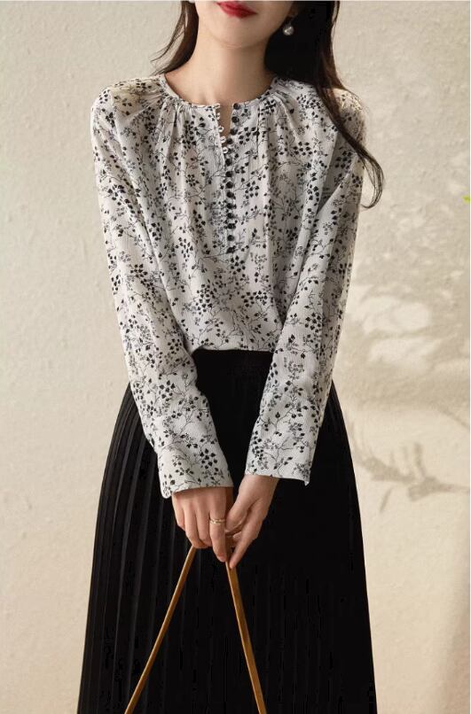 トップス カットソー レディース 長袖 ラウンドネック 襟なし ストレート フェミニン タック ボタン かわいい 大人可愛い 上品 おしゃれ レトロ ガーリー 個性的 エレガント モダン とろみ感 ラブリー キュート クラシカル ロマンティック 花柄 春 オフィス OL 通勤 学生 学校 通学 デート お出かけ お泊まり 旅行 レストラン 女子会 休日 ホテル ショッピング 発表会 コンサート 合コン コンパ カフェ モノトーン 普段使い 着回し モテ 清楚 S M L XL 白 ホワイト 黒 ブラック
