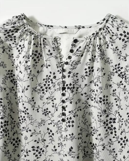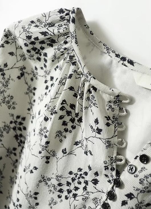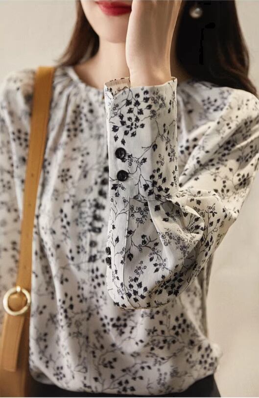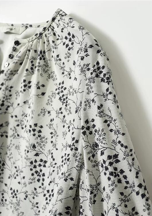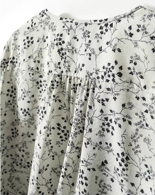 レトロでガーリーな雰囲気が漂うモノトーンカラーの花柄カットソー。