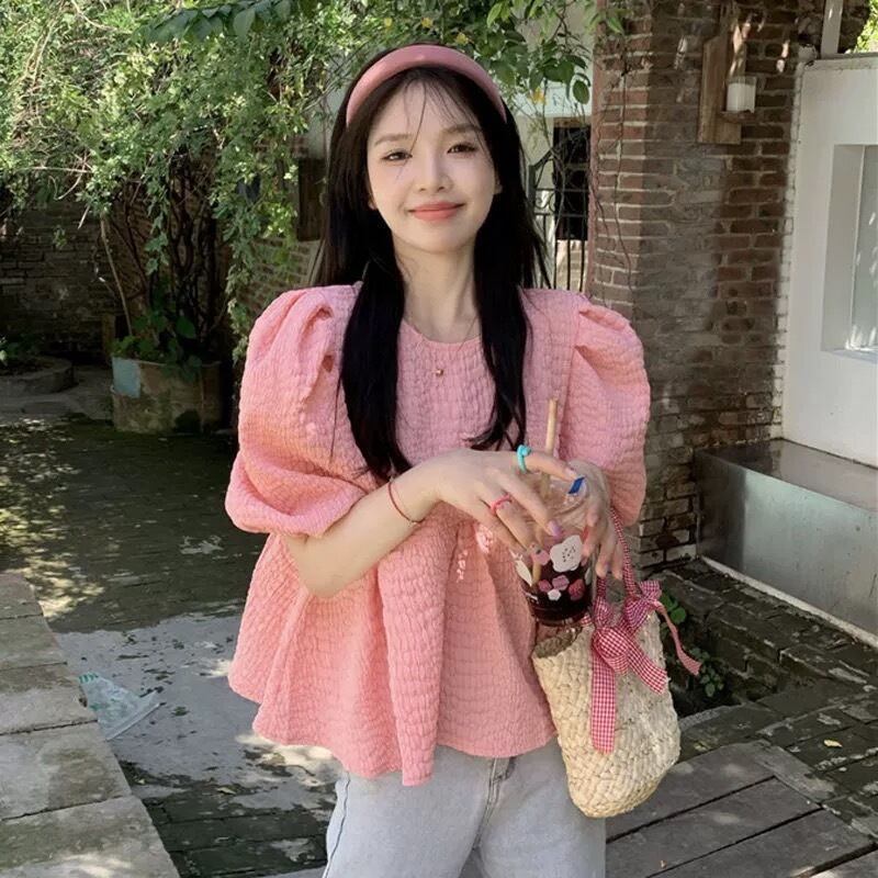 レディース シャツ ブラウス 半袖 パフスリーブ ストレート かわいい 大人可愛い きれいめ カジュアル 上品 おしゃれ レトロ ガーリー 主役級 存在感 ラブリー キュート クラシカル カントリー ロマンティック ナチュラル 夏 ママ OL 学生 デート お出かけ リゾート 旅行 レストラン 公園 女子会 休日 バカンス 高原 ガーデン ショッピング お花見 合コン コンパ カフェ プレゼント 着回し モテ 清楚 トレンド 流行 インスタ映え S M L XL ピンク