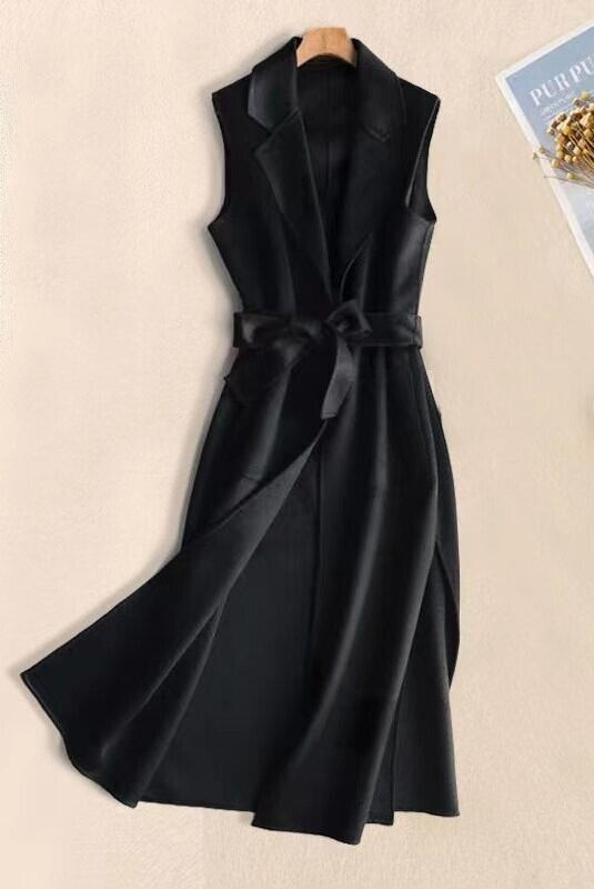 ベスト コート アウター 上着 ジレ レディース ロング 袖なし ノースリーブ 襟付き ワイド Aライン ベルト ウエストマーク ポケット 大人可愛い きれいめ シンプル 上品 おしゃれ かっこいい こなれ感 ルーズ クール 都会的 ラグジュアリー 無地 春 秋 冬 ママ オフィス OL 通勤 デート お出かけ レストラン 休日 ホテル ショッピング 発表会 コンサート 重ね着 体型カバー 着回し レイヤード M L XL 2XL 3XL 大きいサイズ ビッグ 黒 ブラック アプリコット キャメル