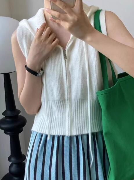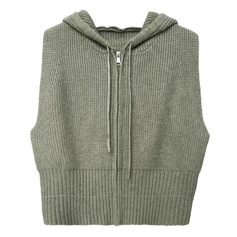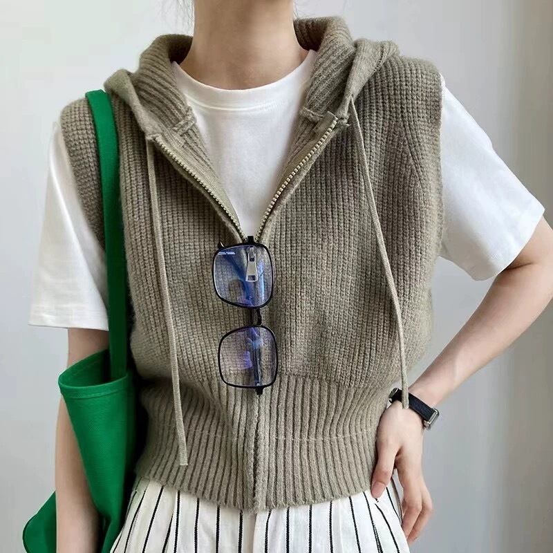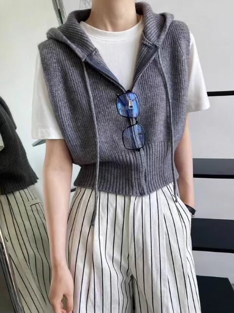 ベスト フード付き レディース ニット 秋 冬 アウター シンプル カジュアル おしゃれ M L グレー グリーン ホワイト ブラック