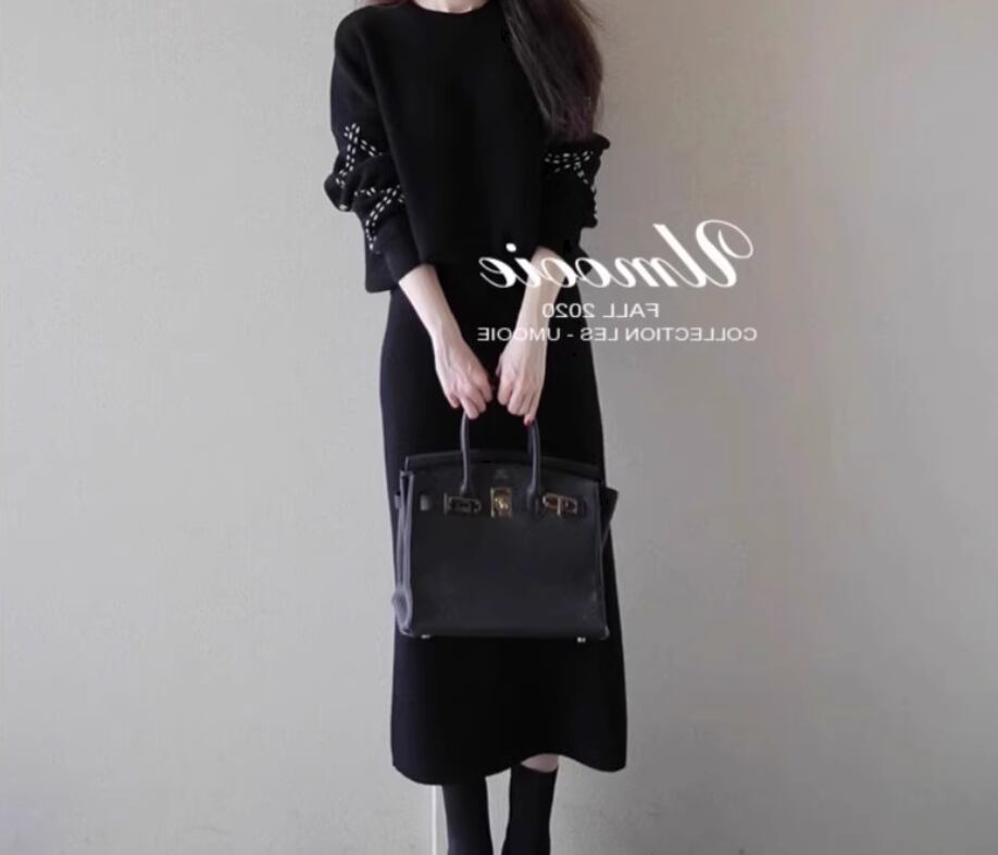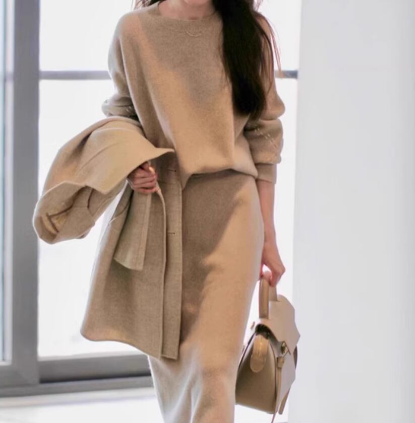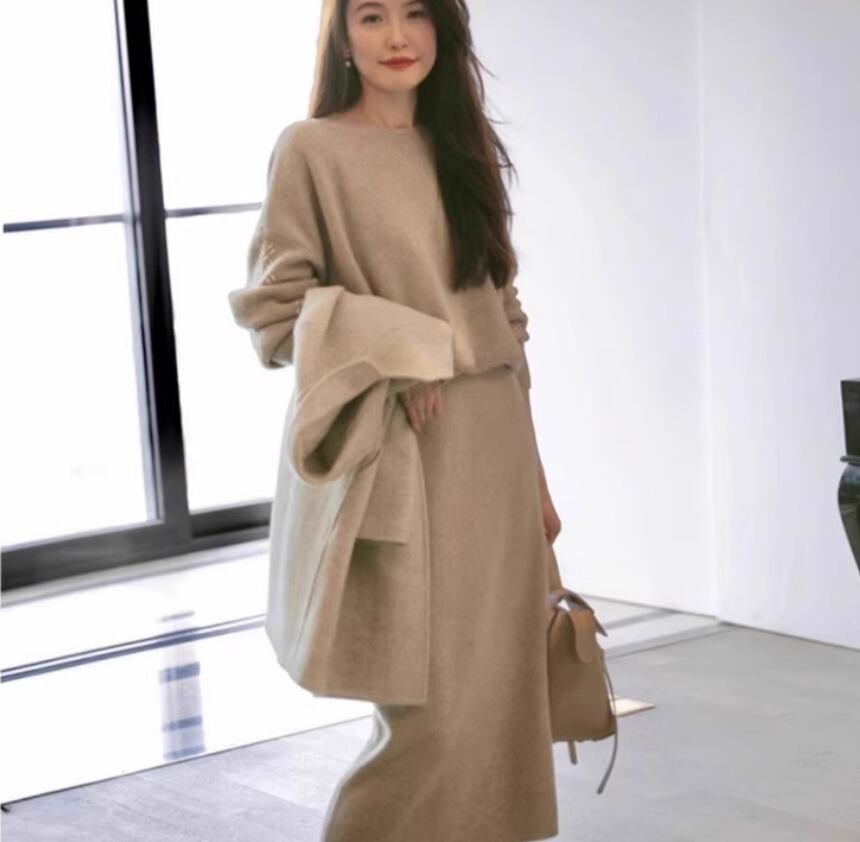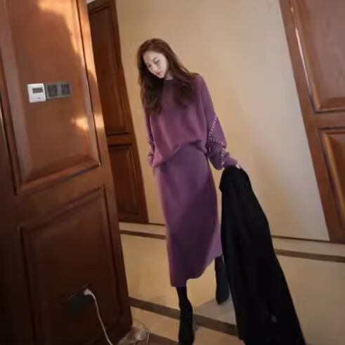 ニットトップスとスカートのツーピースセット