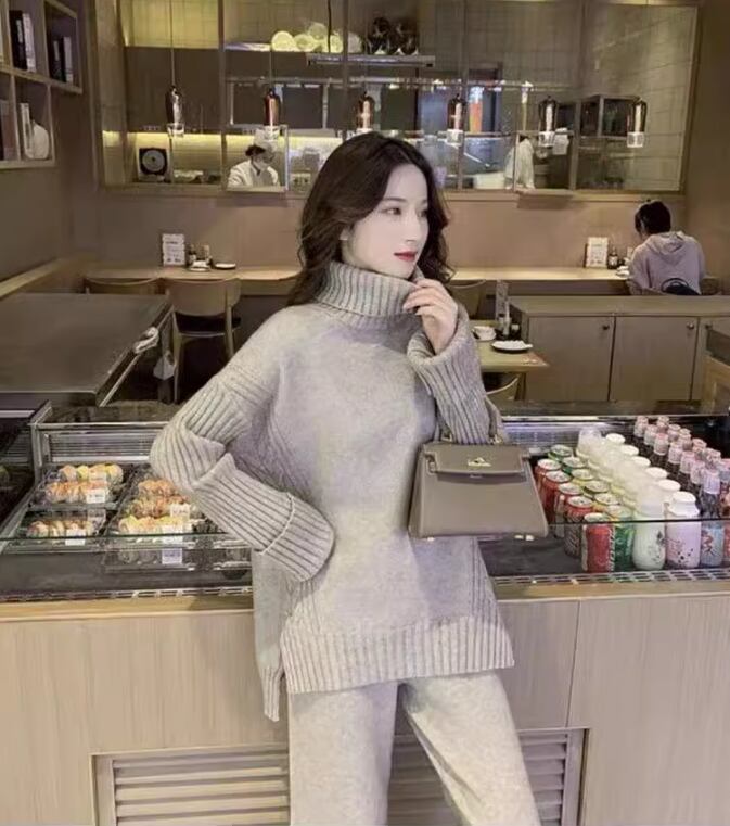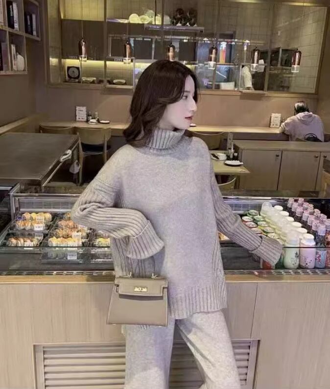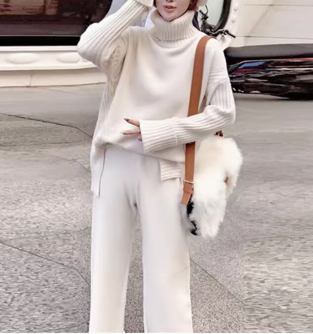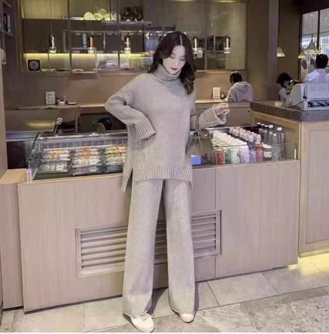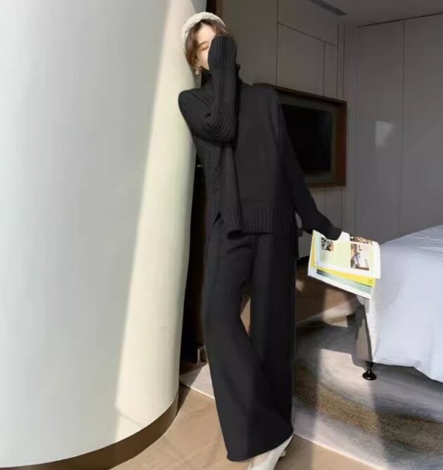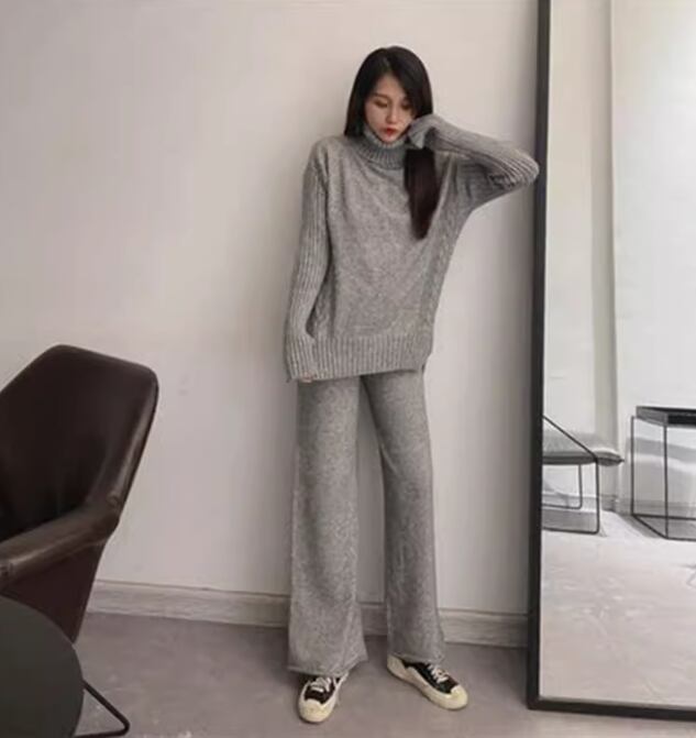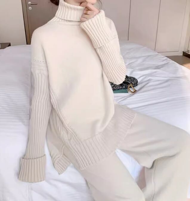 トップス パンツ ボトムス ニット セーター セットアップ レディース ワイドパンツ フルレングス 長袖 タートルネック ワイド サイドスリット ふわふわ リブ ニット 大人可愛い シンプル おしゃれ ルーズ エレガント キュート 都会的 ラグジュアリー 無地 秋 冬 学生 デート お出かけ お泊まり 旅行 女子会 休日 ショッピング 韓国 オルチャン コーデ 楽ちん 脚長 着回し トレンド S M L XL 2XL 大きいサイズ ビッグ ゆったり ゆる ブラック グレー ベージュ ピンク アプリコット