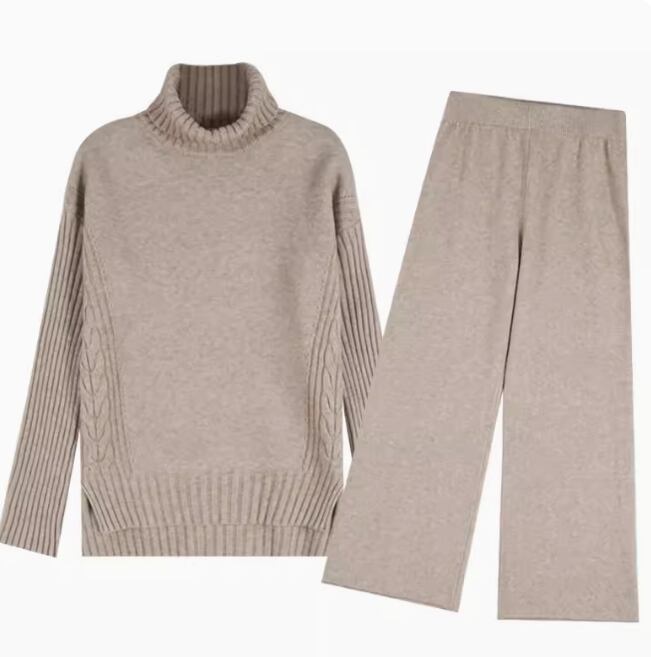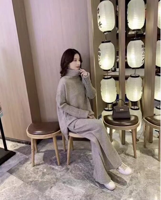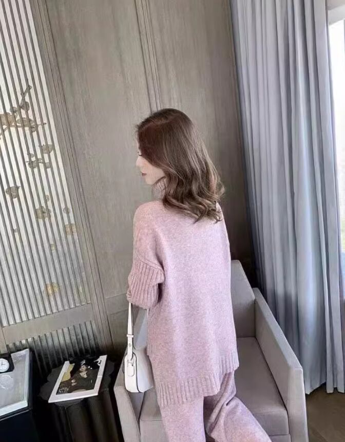 トップスからパンツまでセットで揃う、温かみのあるニットセットアップ。