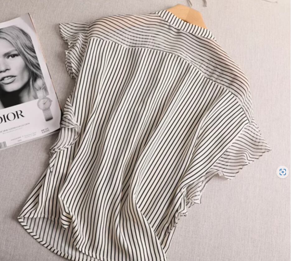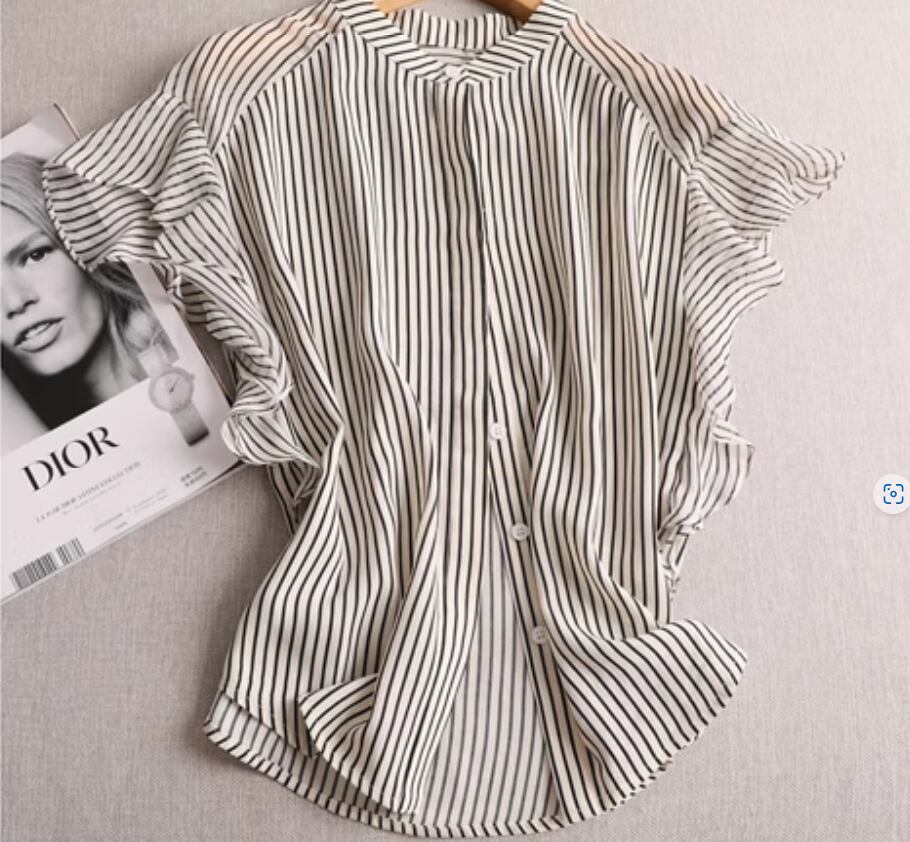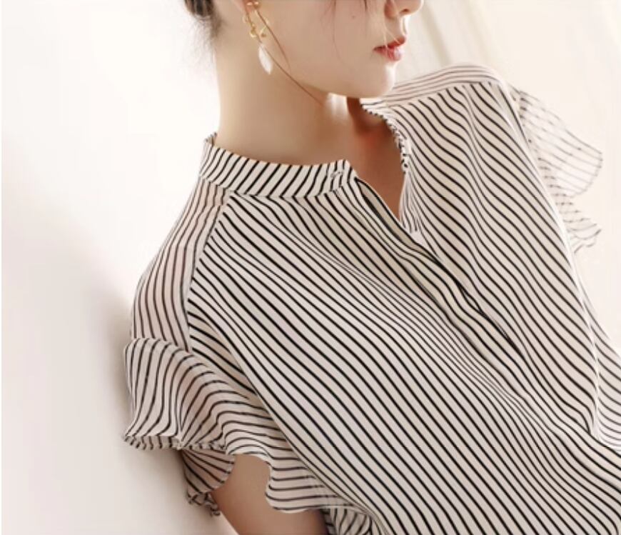 フレア袖×ストライプが大人可愛いシフォンブラウス
