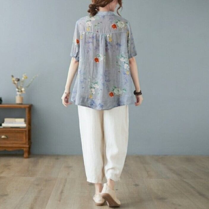 夏の装いにピッタリなゆったりシルエットの花柄シャツ。