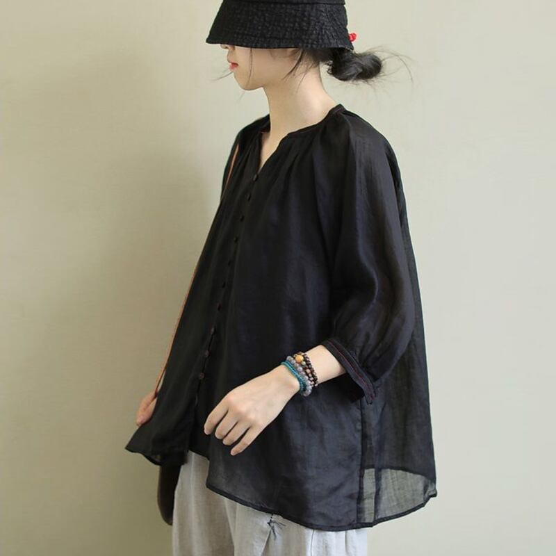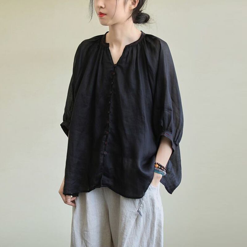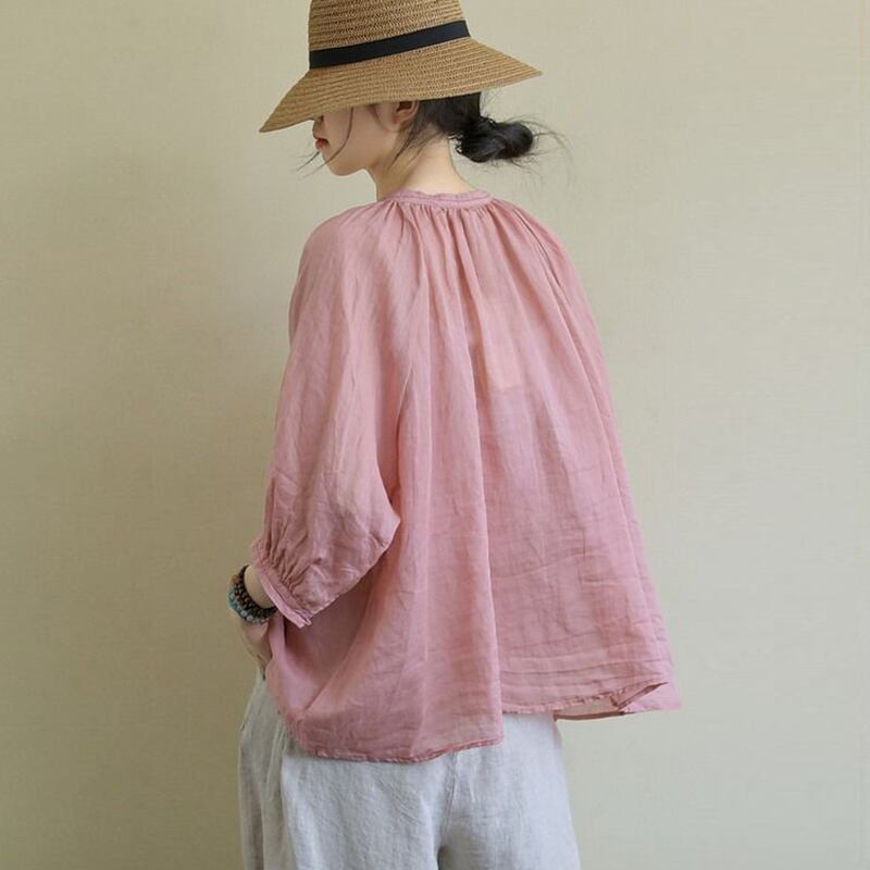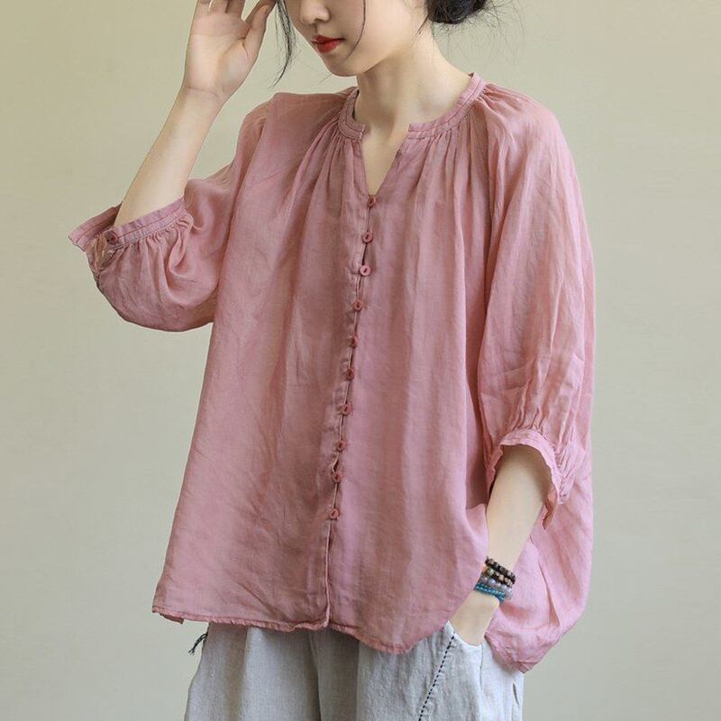 トップス シャツ ブラウス ミディアム丈 7分袖 ラウンドネック 襟なし 薄手 かわいい 大人可愛い きれいめ シンプル 上品 おしゃれ かっこいい レトロ こなれ感 個性的 主役級 存在感 抜け感 ラフ ルーズ アジアン エスニック 春 夏 キュート ナチュラル ベーシック 清楚 クール メンズライク レディース 女性用 ママ OL 通勤 オフィス 学生 通学 デート お出かけ お泊まり イベント 女子会 休日 カフェ ショッピング レストラン コンパ レイヤード 重ね着 普段使い 着回し ワンサイズ