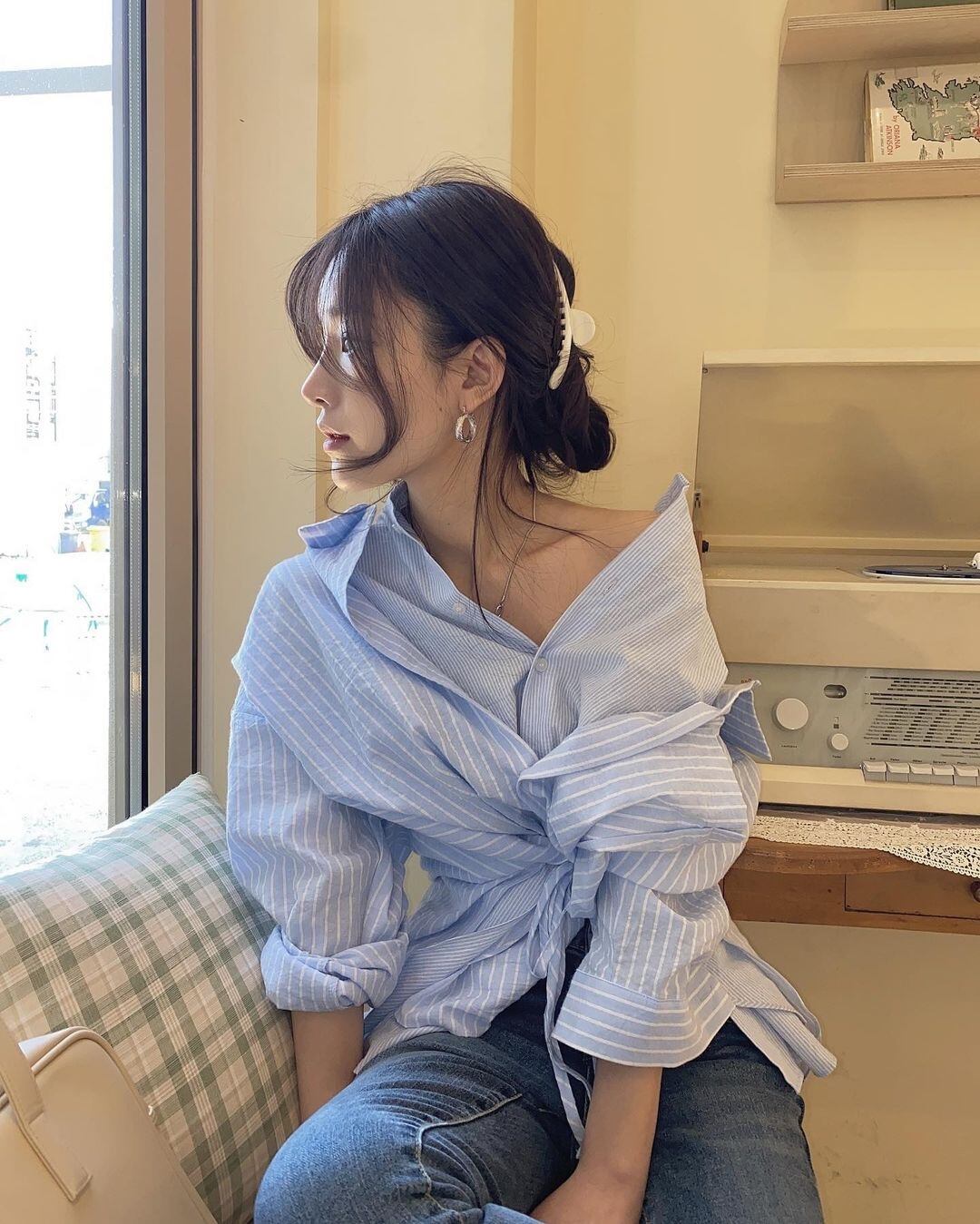 このシャツは、袖ありのボリュームデザインが特徴的。ミディアム丈で、襟付きの上品さとワイドなシルエットがカジュアルな雰囲気を演出します。デートや女子会、休日のお出かけなど、さまざまなシーンで活躍する一枚です。シンプルながらも個性的な切り替えデザインが魅力で、大人女子にぴったりのモード系アイテムとしておすすめです。レトロな雰囲気も感じられ、着るだけでこなれ感が演出できるアイテムです。