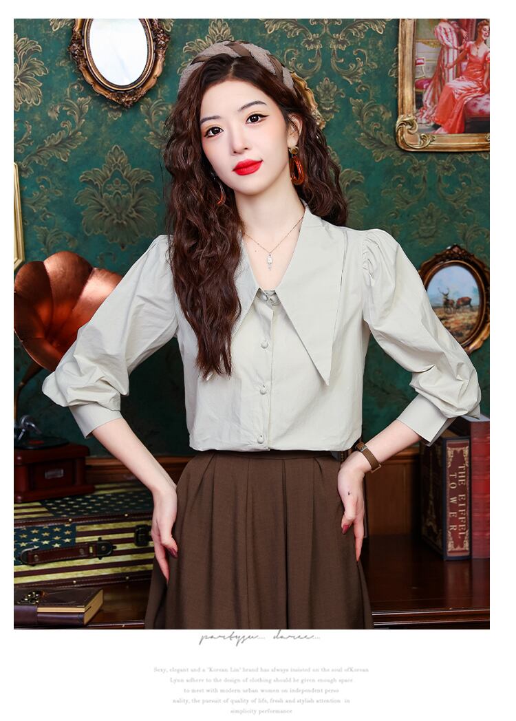 レディース トップス シャツ ブラウス デート ショート ショート丈 袖あり 7分袖 七分袖 ボリューム袖 フレアスリーブ 襟付き 前開き かわいい 大人可愛い きれいめ シンプル カジュアル 上品 おしゃれ お洒落 レトロ 大人女子 こなれ感 ラフ ラブリー キュート ガーリー 個性的 クール モード系 エレガント モダン 主役級 存在感 抜け感 レディース デート お出かけ 女子会 休日 着回し 普段使い ファッション コーデ スタイル モテ プレゼント 定番 トレンド インスタ映え 色展開