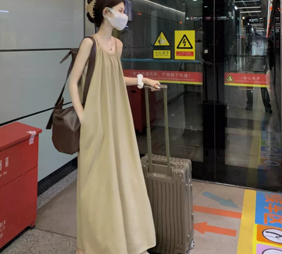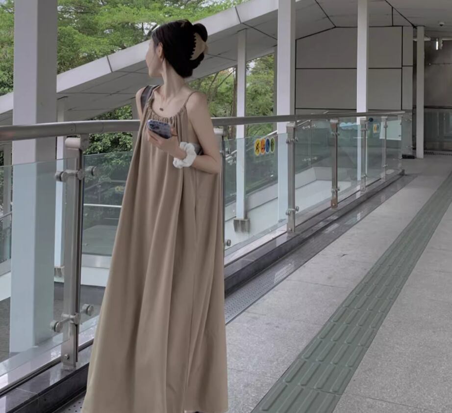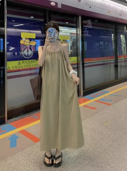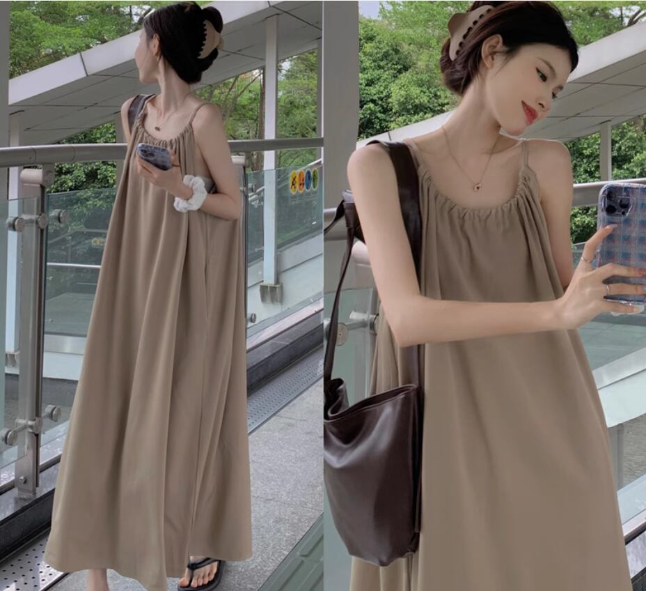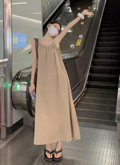 ワンピース ワンピドレス ロング丈 袖なし ノースリーブ ラウンドネック Aライン シンプル カジュアル おしゃれ お洒落 大人可愛い 無地 春 夏 10代 20代 30代 40代 レディース 女性用 ママ マタニティ デート お出かけ 休日 リゾート 旅行 着回し 普段使い 重ね着 楽ちん 体型カバー S M L ゆったり ベージュ