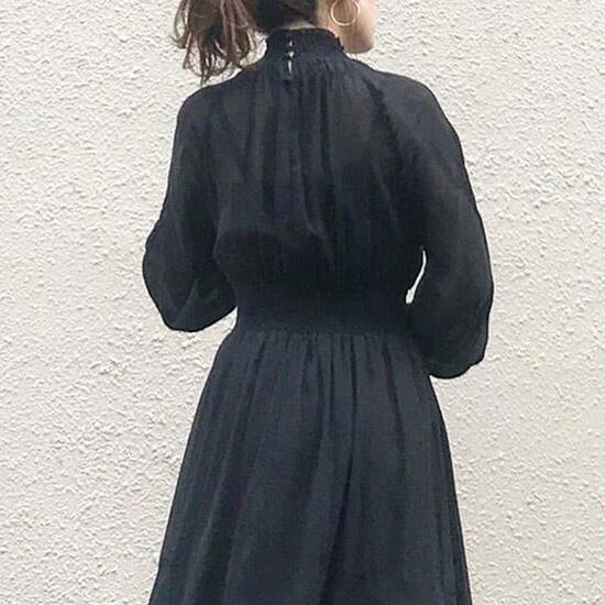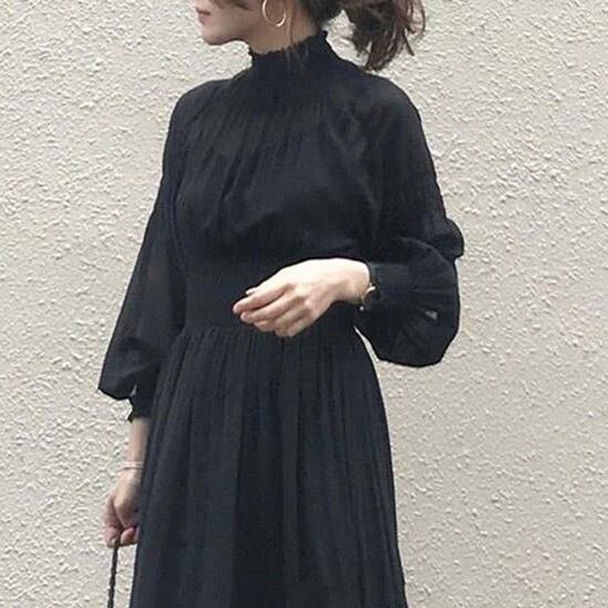 ワンピース ロングワンピース 長袖 ボリューム袖 ハイネック ウエストマーク セミフレア 揺れる かわいい 大人可愛い きれいめ シンプル カジュアル 上品 おしゃれ かっこいい 大人女子 こなれ感 個性的 きちんと レトロ 主役級 存在感 キュート クール エレガント フォーマル 無地 春 秋 レディース 女性用 ママ OL 通勤 学生 通学 デート お出かけ お泊まり イベント 女子会 休日 カフェ ショッピング 旅行 リゾート コンパ レストラン パーティー 普段使い 着回し ワンサイズ