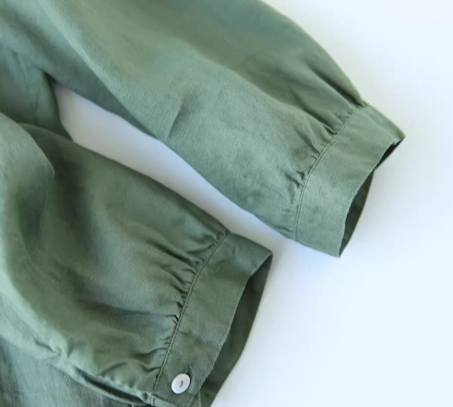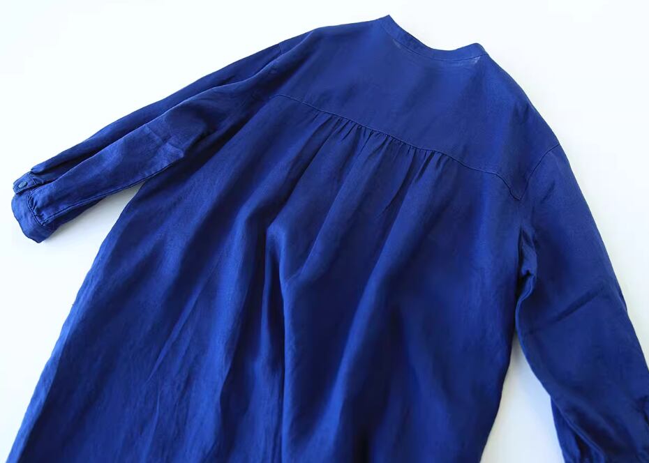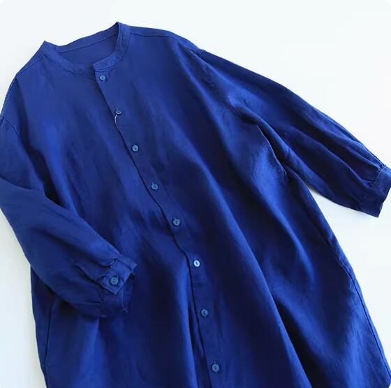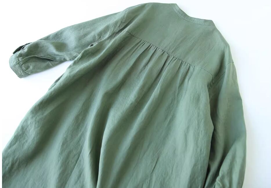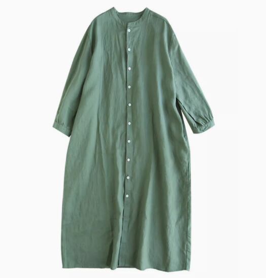 ワンピース シャツワンピース ミディアム丈 袖あり 長袖 スタンドカラー Aライン 透け感 綿 麻 かわいい 大人可愛い シンプル カジュアル おしゃれ お洒落 こなれ感 ラフ ガーリー 無地 春 夏 秋 10代 20代 30代 40代 50代 60代 レディース 女性用 ママ マタニティ デート お出かけ 休日 旅行 着回し 普段使い 重ね着 楽ちん 体型カバー L XL 2XL 緑 グリーン ベージュ ロイヤルブルー