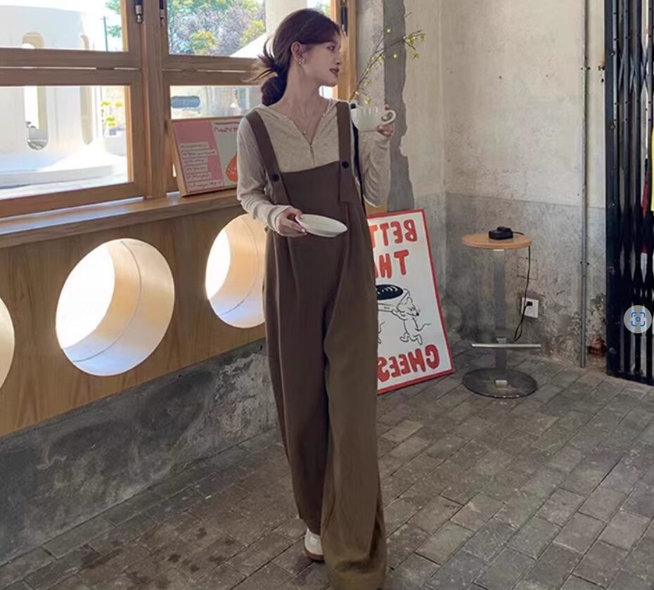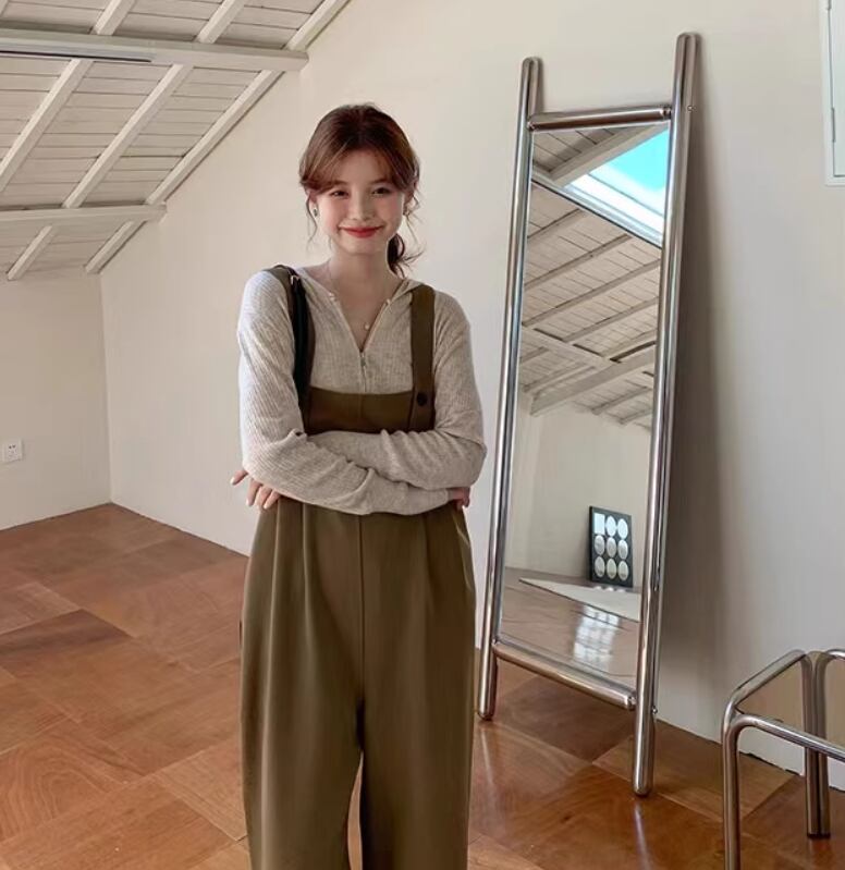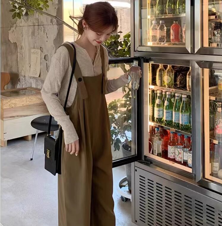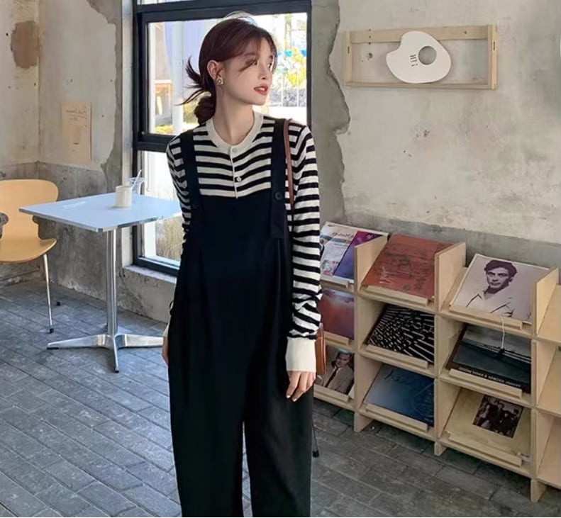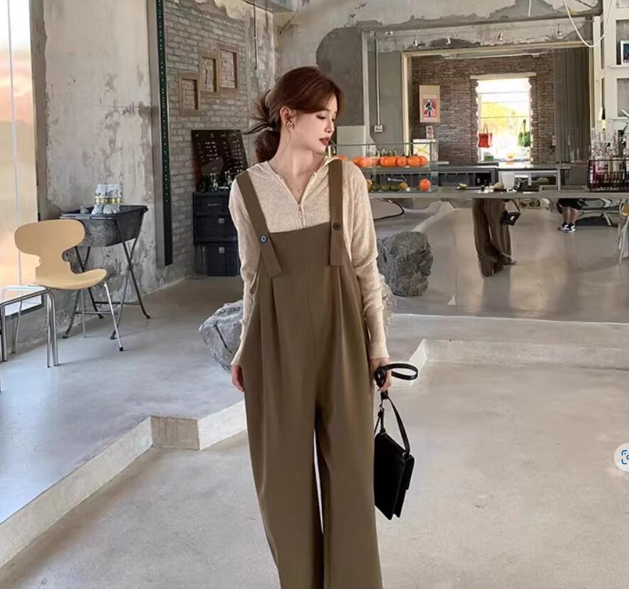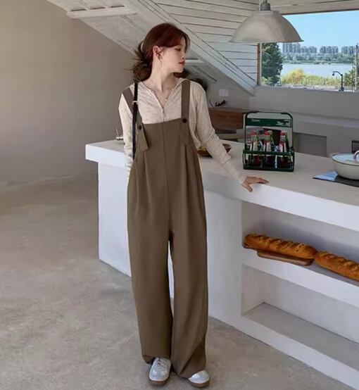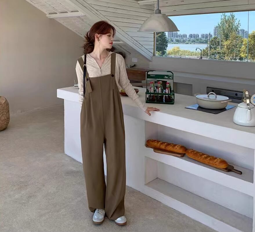 シンプルなデザインで合わせやすいオールインワンサロペット