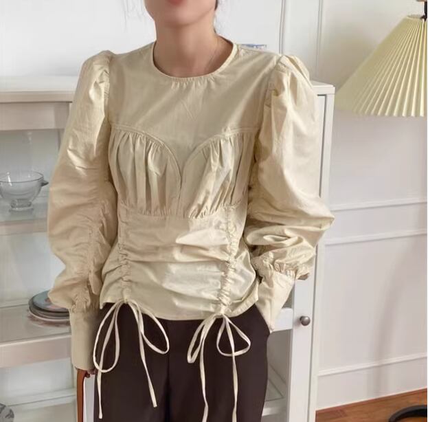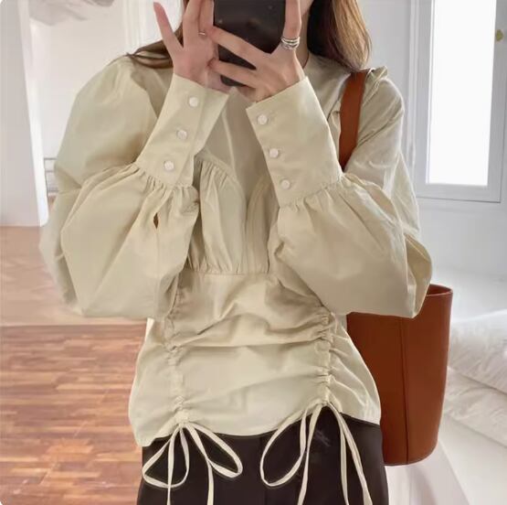 レディース シャツ ブラウス かわいい 大人可愛い きれいめ シンプル カジュアル 上品 おしゃれ かっこいい こなれ感 通勤 デート お出かけ 女子会 休日 ショッピング ギャザー アプリコット ホワイト S M